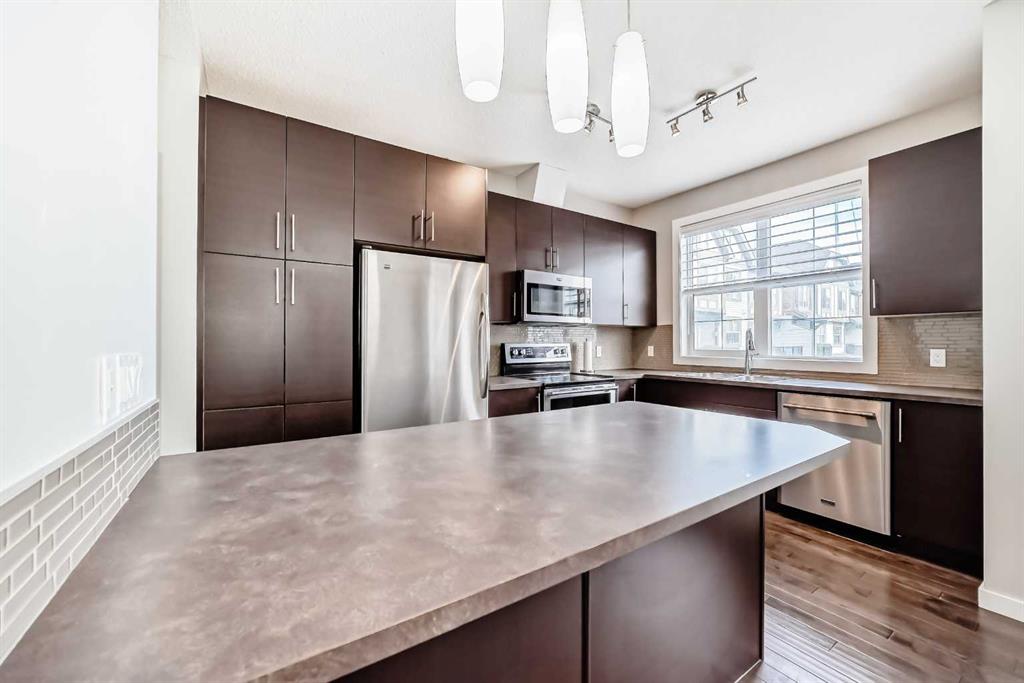 *** OPEN HOUSE - Sat, Mar 7th, 12:00-4:00pm, Sun, Mar 8th, 1:00-4:00pm *** Welcome to this beautifully maintained two-storey townhome in the highly sought-after community of New Brighton. Offering over 1,500 sq ft of living space and an attached heated double garage, this home combines comfort, style, and functionality. Step inside through the spacious front entry and head up to the bright open-concept main living area, featuring hardwood flooring, and large windows that fill the space with natural light. The kitchen is a true highlight and a chef’s dream, complete with custom cabinetry, modern tile backsplash, a large island, and upgraded appliances including a Maytag refrigerator, double oven, and dishwasher. The adjacent dining area provides plenty of space for entertaining and offers access to a private balcony — perfect for summer BBQs. A conveniently located half bathroom completes the main level. Upstairs you’ll find three spacious bedrooms, all featuring large windows. The primary suite includes a walk-in closet and private ensuite, while the two additional bedrooms offer generous closet space and share a beautifully finished full bathroom with modern tile work. The upper floor also features a large laundry area with built-in cabinetry and storage, along with a Samsung washer and dryer. A tucked-away bonus storage room on the staircase landing offers the perfect place for seasonal items or a fun hideaway for kids. The lower level provides another versatile room, ideal for a home office, workout space, or flex room, along with access to the utility room and attached garage. Located in one of Calgary’s most family-friendly communities, New Brighton offers excellent schools, nearby shopping, and quick access to major roadways. Residents also enjoy access to the New Brighton Clubhouse, featuring a water park, hockey rink, tennis courts, and event facilities. Don’t miss your chance to own this exceptional home — book your private viewing today!