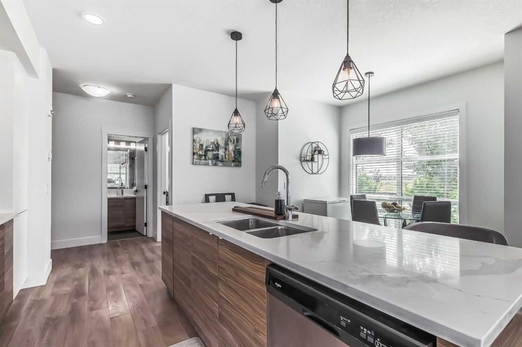Welcome to this stunning end-unit ground floor apartment featuring 9-foot ceilings in the vibrant community of Seton. Perfectly situated in a premium location, this home offers breathtaking mountain views to the West and peaceful park views to the North. Inside, you’ll find wall-to-wall windows that fill the space with natural light, creating an inviting and airy atmosphere. The open and functional floor plan showcases a modern kitchen with a large peninsula breakfast bar island, quartz countertops, stainless steel appliances, and full-height cabinetry. The spacious living room and generous dining area are ideal for entertaining friends and family. The primary suite features a large window, a walk-in closet, and a luxurious ensuite complete with dual vanities, a soaker tub, and a stand-up shower with full-height tile. A well-sized second bedroom is complemented by a convenient 4-piece cheater ensuite, perfect for guests or family. This condo also comes with two titled underground secured parking stalls and a separate titled storage unit, ensuring all your parking and storage needs are met. Seton is one of Calgary’s fastest-growing communities, offering endless amenities including a VIP Cineplex theatre, public library, South Health Campus, the world’s largest YMCA, shopping, dining, schools, and easy access to Stoney Trail and Deerfoot Trail. Don’t miss out on this rare opportunity book your private showing today!