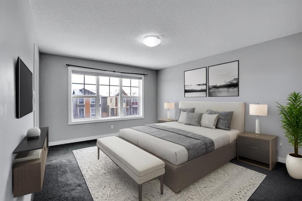 Welcome to this beautifully maintained and thoughtfully upgraded home, offering over 2,500 sq. ft. of fully developed living space in the highly desirable and rapidly growing community of Cornerstone. The main floor is exceptionally spacious and designed for modern living and entertaining. A bright open-concept layout is filled with natural light through large windows and enhanced by 4000K lighting, creating a warm and inviting atmosphere throughout. The gourmet kitchen is a showpiece, featuring a huge island, abundant cabinetry, and a convenient pantry, seamlessly connecting to the dining and living areas. A stylish half bathroom completes the main level, while a private rear deck provides the perfect space for outdoor gatherings and relaxation. Upstairs, the primary retreat impresses with a luxurious en-suite featuring a standing shower, while two additional bedrooms are generously sized at approximately 9.4 x 15 feet, offering plenty of space for family, guests, or a home office. A full common bathroom and a dedicated upper-level laundry room add convenience to daily living. The fully upgraded illegal basement is thoughtfully finished and features a separate side entrance, two large bedrooms, a full bathroom, a modern kitchen, and its own laundry area — ideal for extended family or multigenerational living. Quartz countertops are featured throughout the home, including the kitchen and all bathrooms, adding a consistent and contemporary finish. Located within walking distance to bus stops and Chalo FreshCo, and close to parks, playgrounds, walking paths, schools, grocery stores, and restaurants. Enjoy easy access to Stoney Trail, Country Hills Boulevard, Metis Trail, Calgary International Airport, CrossIron Mills, Costco, and the Amazon warehouse, making commuting effortless. This is a rare opportunity to own a spacious, move-in-ready home in a well-connected and vibrant community. (Some photos are virtually staged and edited)