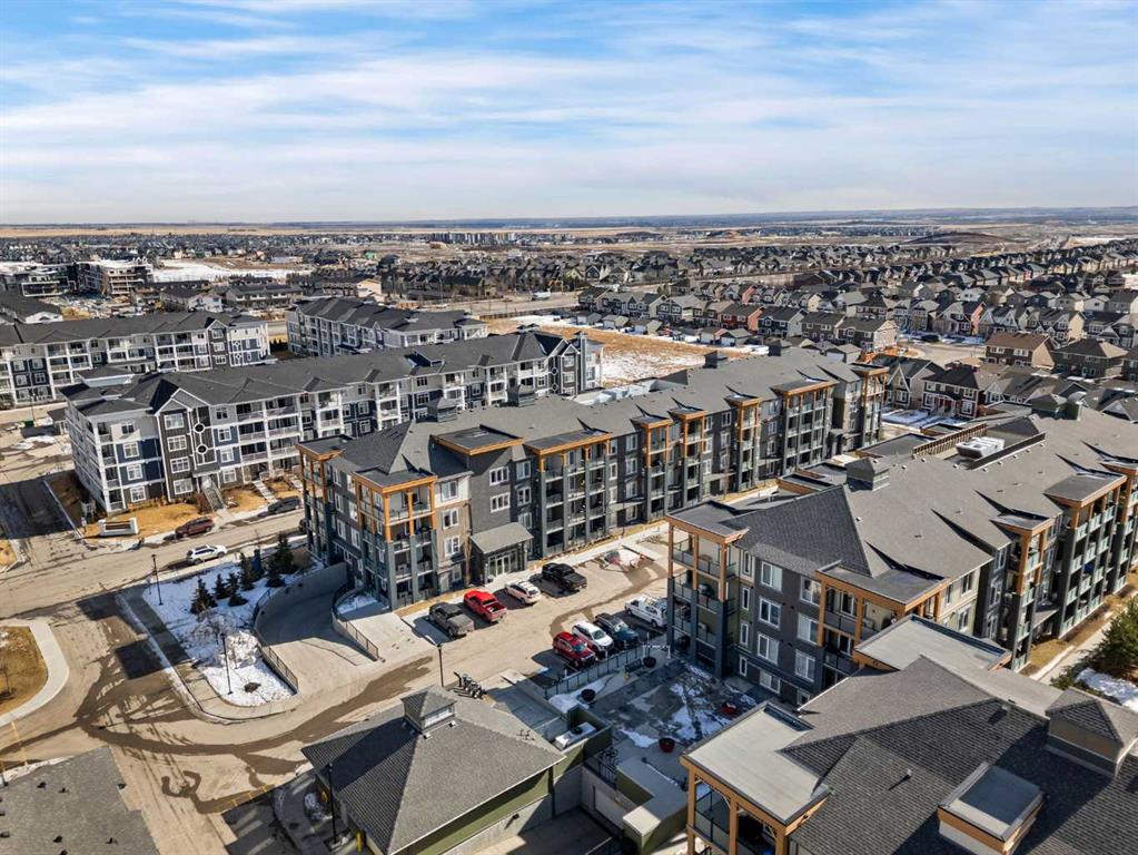Welcome to The Regatta at Auburn Bay, perfectly located in one of Calgary’s most sought-after lake communities, with shops, cafés, pubs, groceries, and lake access all just steps from your door. This ground-level, 2-bedroom, 2-bathroom condominium offers the ultimate convenience—no stairs or elevators to navigate—and is fully turn-key and move-in ready. Built in 2020, and featuring boho-accentuated design, it’s one of the warmest and most thoughtfully designed homes in the building. At the heart of the home is the large, stunning kitchen, designed to impress. Quartz countertops, a classic subway tile backsplash, and a full Whirlpool stainless steel appliance package—including a convection oven and fridge with ice and water dispenser—create a space that’s both timeless and functional. The oversized island with breakfast bar is ideal for everyday living and entertaining, complete with a NEW Silgranit sink and touchless faucet (2025). FRESHLY painted in 2025 and featuring two walls with NEW wood slat acoustic panels (2026), NEW vinyl plank flooring (2025) flows throughout the unit and leads to one of two spacious primary bedrooms. The primary retreat features a walk-in closet and a spa-inspired ensuite with a double quartz vanity and an upgraded glass-enclosed stand-up shower, offering a clean, modern feel you’ll appreciate daily. Step outside to the large balcony with molded tile floors, perfect for morning coffee or relaxing evenings. Enjoy year-round comfort with central air conditioning, stacked in-unit laundry, heated titled underground parking (stall #113), a titled storage locker, and convenient bicycle storage. One pet of any weight is permitted on this ground level home (with board approval). This unbeatable Auburn Bay location puts everything within walking distance while offering the lifestyle bonus of lake access—a rare and highly desirable feature.