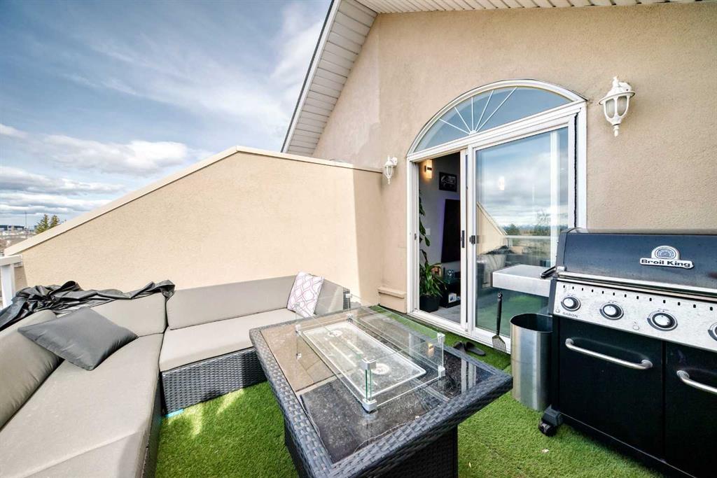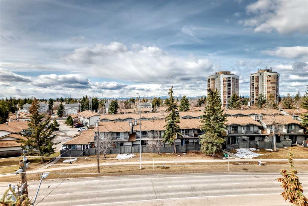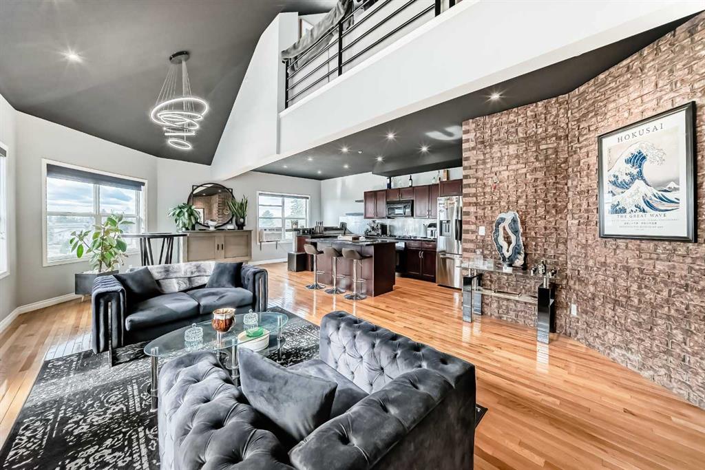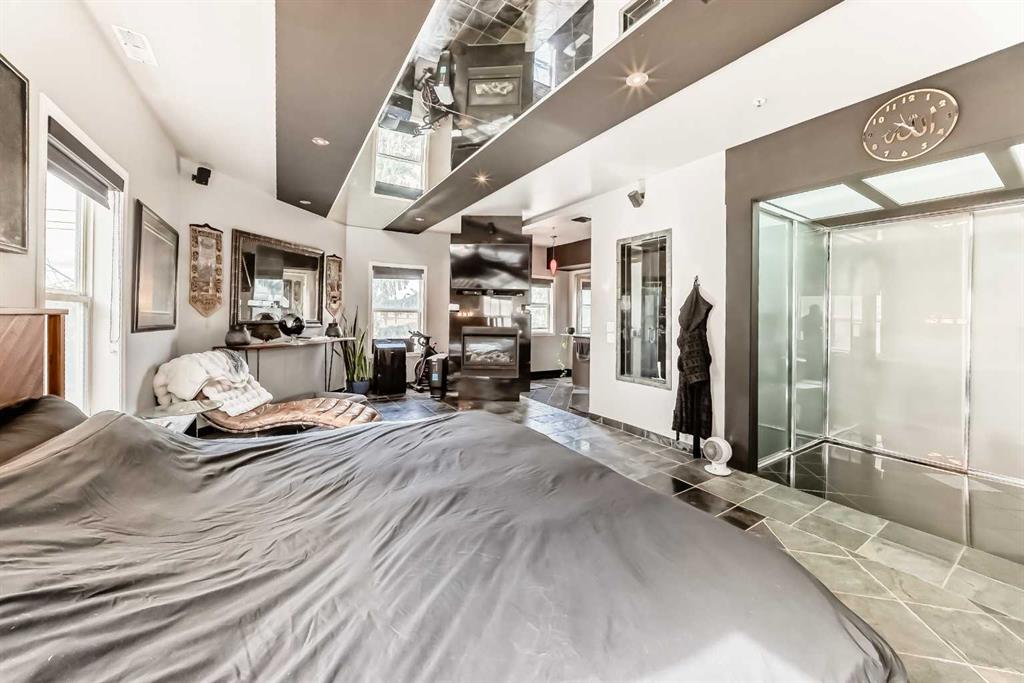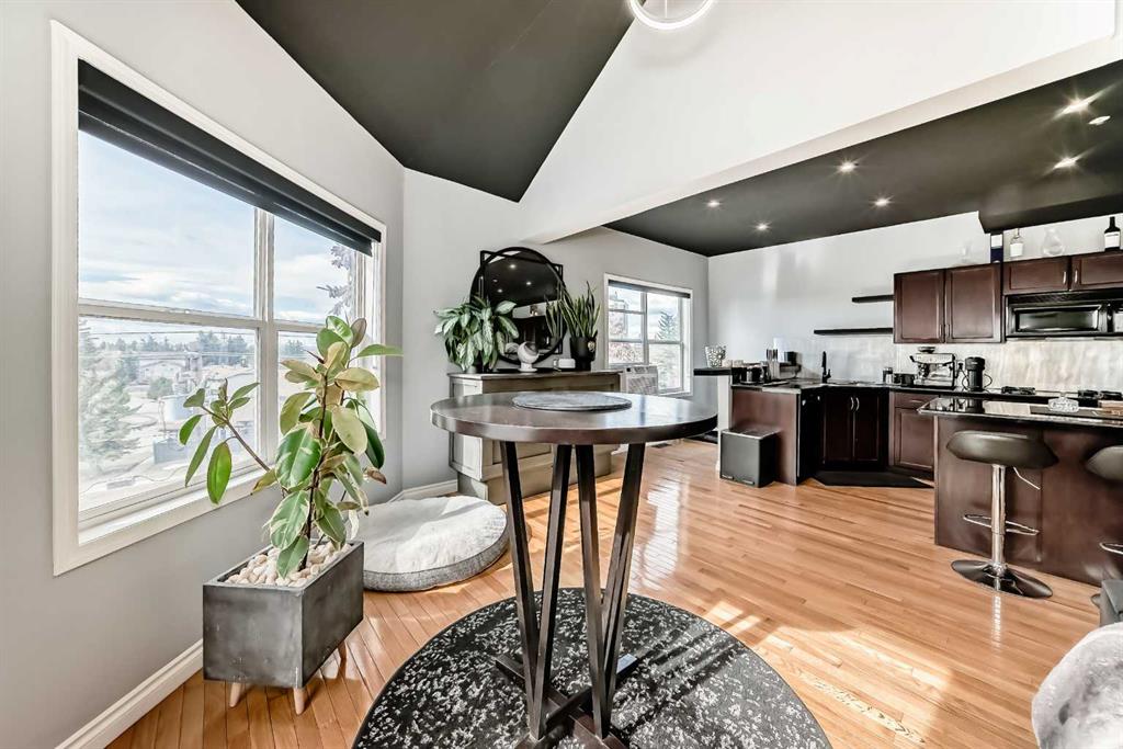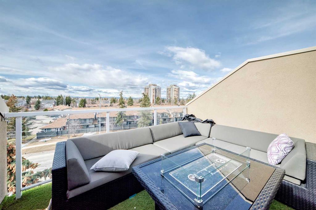 Welcome to this unique 3 level penthouse LOFT! This distinctive unit offers a rare blend of space, character, and city convenience. The main level welcomes you with rich hardwood flooring, soaring ceilings, a striking brick feature wall, and a gas fireplace that anchors the bright, open living area. The kitchen is designed for both everyday living and entertaining, featuring a central island, breakfast bar, generous cabinetry, and abundant prep space. Large windows with plantation shutters fill the home with natural light and frame beautiful west and south-facing views. Upstairs, the loft level creates a unique retreat or flex space which can be converted to another bedroom. Complete with a stylish wet bar and access to a private patio—ideal for hosting or unwinding in a quiet setting. The lower level features a spacious primary bedroom and a beautifully finished ensuite with marble and slate tile, plus a relaxing steam shower for a spa-like feel. This penthouse also includes two titled underground heated parking stalls and a large assigned storage locker. Located steps from shops, restaurants, parks, and pathways, with quick access to Signal Hill, Aspen, West Springs, downtown, and the mountains, this home offers the perfect balance of comfort, style, and location. A truly exceptional opportunity in one of Calgary’s most desirable west-side communities.
