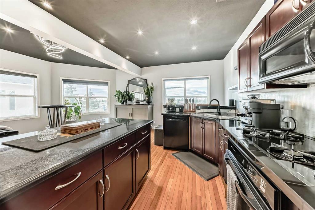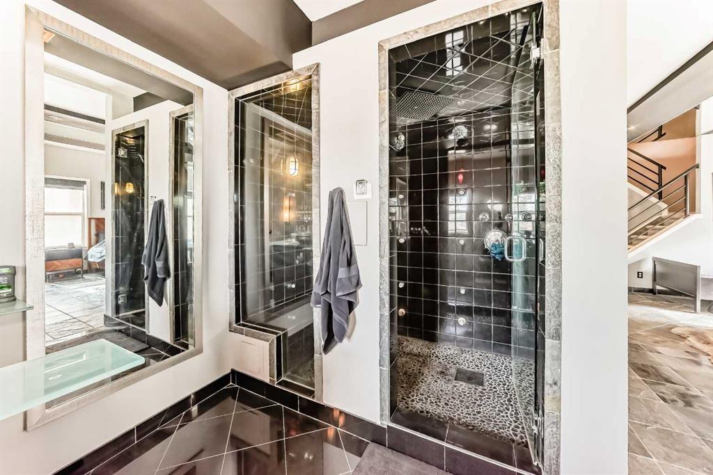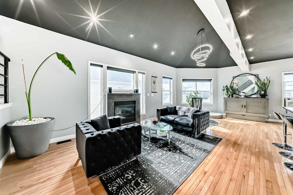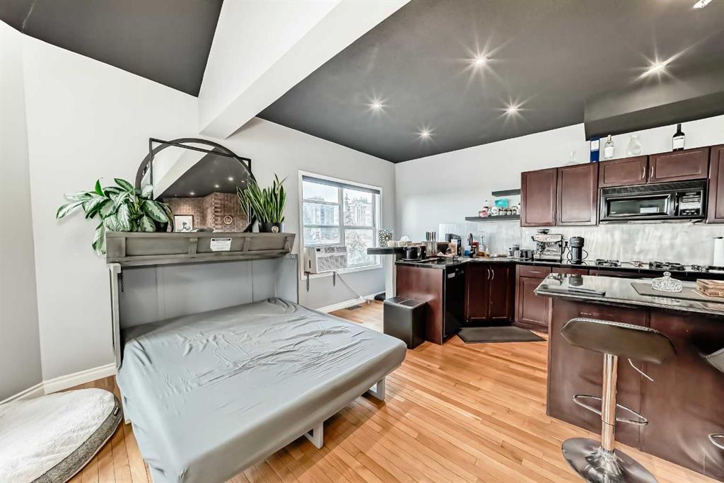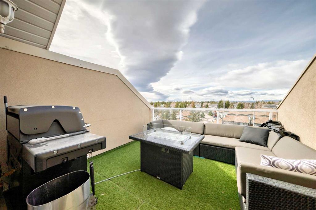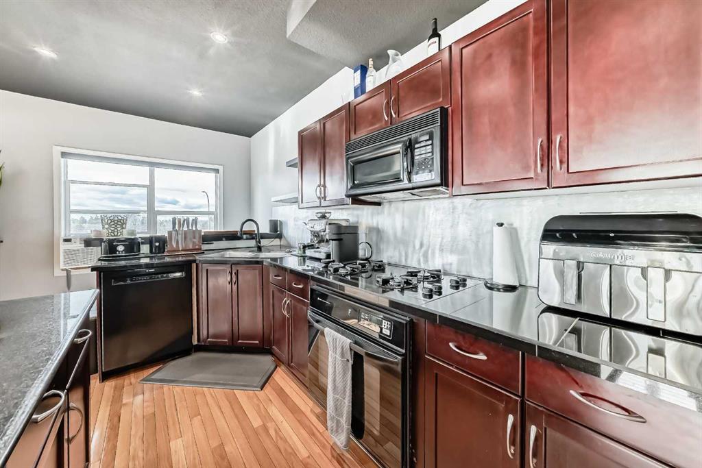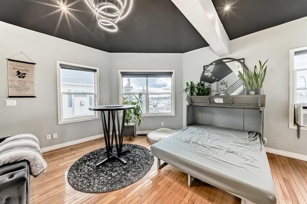 Welcome to this unique 3 level penthouse LOFT! This distinctive unit offers a rare blend of space, character, and city convenience. The main level welcomes you with rich hardwood flooring, soaring ceilings, a striking brick feature wall, and a gas fireplace that anchors the bright, open living area. The kitchen is designed for both everyday living and entertaining, featuring a central island, breakfast bar, generous cabinetry, and abundant prep space. Large windows with plantation shutters fill the home with natural light and frame beautiful west and south-facing views. Upstairs, the loft level creates a unique retreat or flex space which can be converted to another bedroom. Complete with a stylish wet bar and access to a private patio—ideal for hosting or unwinding in a quiet setting. The lower level features a spacious primary bedroom and a beautifully finished ensuite with marble and slate tile, plus a relaxing steam shower for a spa-like feel. This penthouse also includes two titled underground heated parking stalls and a large assigned storage locker. Located steps from shops, restaurants, parks, and pathways, with quick access to Signal Hill, Aspen, West Springs, downtown, and the mountains, this home offers the perfect balance of comfort, style, and location. A truly exceptional opportunity in one of Calgary’s most desirable west-side communities.