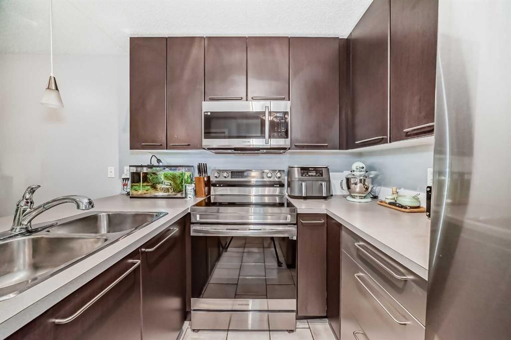 Bright 1-Bedroom Condo in Lincoln Park – Move-In Ready & Pet Friendly Don’t miss this bright and beautifully maintained 1-bedroom, 1-bathroom condo in the highly desirable community of Lincoln Park. Featuring a modern open-concept layout with stylish laminate and tile flooring, this move-in-ready home offers comfort, functionality, and exceptional value. The well-appointed kitchen includes a convenient breakfast bar and flows seamlessly into the dining area and inviting living room, complete with a cozy gas fireplace—perfect for everyday living or entertaining. The spacious primary bedroom offers generous closet space and direct access to a cheater ensuite with a large soaker tub. South-facing windows flood the unit with natural light, while the private patio provides direct access to a professionally landscaped courtyard. And it's Pet-friendly! Enjoy peace of mind with recent upgrades, including all-new Samsung Appliances installed in June 2024—Electric Range, Microwave Hood Fan, Refrigerator, Washer, and Dryer—plus a Bosch Dishwasher and New Window Coverings (2025). Located in the well-managed Morgan at the Park, residents benefit from outstanding amenities including a fitness center, party room, rentable guest suites, titled underground parking, assigned storage locker, and ample visitor parking. Ideally situated just minutes from Mount Royal University, shopping, restaurants, and major commuter routes. An excellent opportunity for first-time buyers, investors, or downsizers—schedule your showing today!