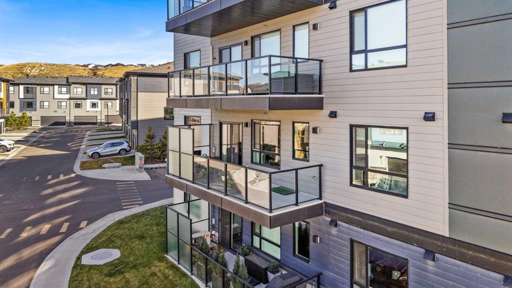 ** OPEN HOUSE SUNDAY MARCH 8TH 1 PM -3 PM Discover refined living at this bright and beautifully maintained NW corner unit in Riverstone Manor offering over 1,040 sq ft of intelligently designed living space and one of the most private positions in the entire building. With only one shared wall and expansive windows wrapping the corner, natural light pours in throughout the day, creating an airy, refined atmosphere that feels more like a bungalow than a condo. Featuring 2 generous bedrooms, 2 full bathrooms, and a full sized laundry room, the layout is exceptionally functional, with thoughtful separation between the bedrooms for optimal privacy. The inviting foyer opens into a spacious open concept great room anchored by walls of windows. The living and dining areas offer flexibility for entertaining, quiet evenings, or a dedicated work from home setup. The kitchen integrates seamlessly and showcases full height cabinetry, quartz countertops, stainless steel appliances, and a large island designed for gathering. Step outside through double patio doors to a rare 20 x 7 west facing balcony. With no direct neighbours beside you, this is one of the most private outdoor spaces in the complex. Enjoy uninterrupted sky, peaceful evenings, and golden sunsets as an extension of your living space. Inside, luxury vinyl plank flooring runs throughout, with no carpet. The primary suite features a walk through closet and a well appointed 4 piece ensuite with dual sinks and a walk in shower. The second bedroom sits on the opposite side of the unit, ideal for guests, a home office, or additional flex space, and is positioned next to a full 4 piece bathroom. A large dedicated laundry room adds rare in suite storage and everyday practicality. Additional highlights include 9 foot ceilings, ductless air conditioning, heated titled underground parking, and Alberta New Home Warranty still in place, offering confidence and peace of mind. The true differentiator is the setting. Located steps from the Bow River, extensive pathway systems, and the natural beauty of Fish Creek Park, Riverstone offers a lifestyle that feels removed from the city, yet remains minutes to Seton’s shopping, dining, and South Health Campus. This is not simply condo living, it is low maintenance living in one of Calgary’s most serene and tightly held communities, where outdoor access, privacy, and smart design come together. At this size and location within Riverstone, opportunities at this price point are increasingly rare.