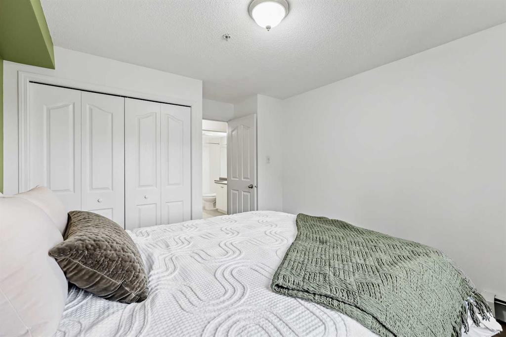 Great opportunity in this freshly renovated unit for first time buyers, investors, or downsizers in this desirable neighborhood! Brand new vinyl plank flooring throughout, freshly painted, newer appliances, and move in ready right away. Open concept floorplan into large living room with sliding doors out to the good-sized covered balcony. Updated kitchen with crisp white cabinetry, sleek black backsplash, new high end LG stainless steel appliances, and open bar ledge to the dining area. Good sized master bedroom with large window letting in lots of natural light and double closet. Adjoining full 4-piece bathroom with tile flooring and tub surround across the hall. Spacious den makes a great home office, gym, storage, or guest bedroom space! Convenient in-unit laundry closet with stacked washer and dryer. VIP parking stall closest one to the front entrance with power. Located in a very well managed building with low condo fees that include all utilities... ELECTRICITY, HEAT, WATER and SEWER! All in a prime location in the sought after community of Evergreen, close to numerous shops, parks, schools, restaurants, and quick access onto Stoney Trail - making commuting a breeze! This property shows 10/10, is move-in ready and awaiting its new owner!