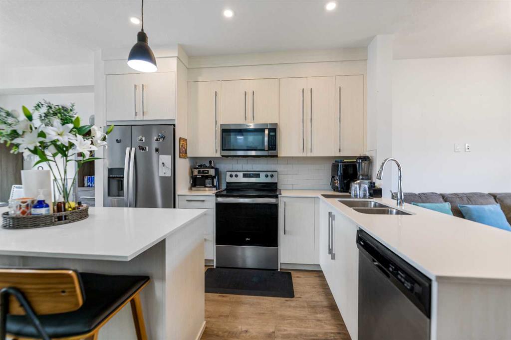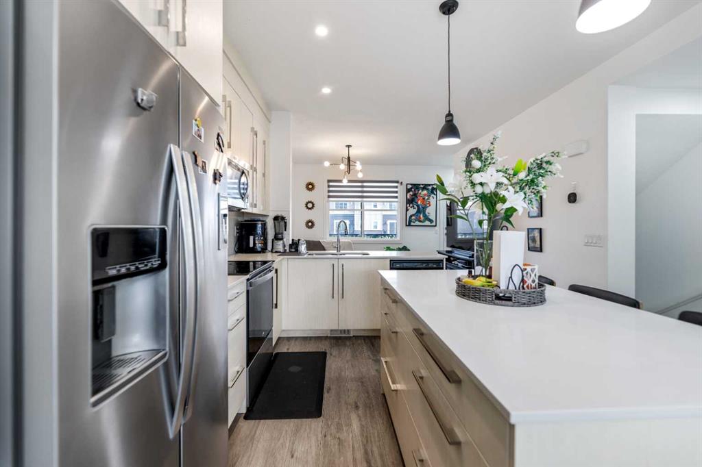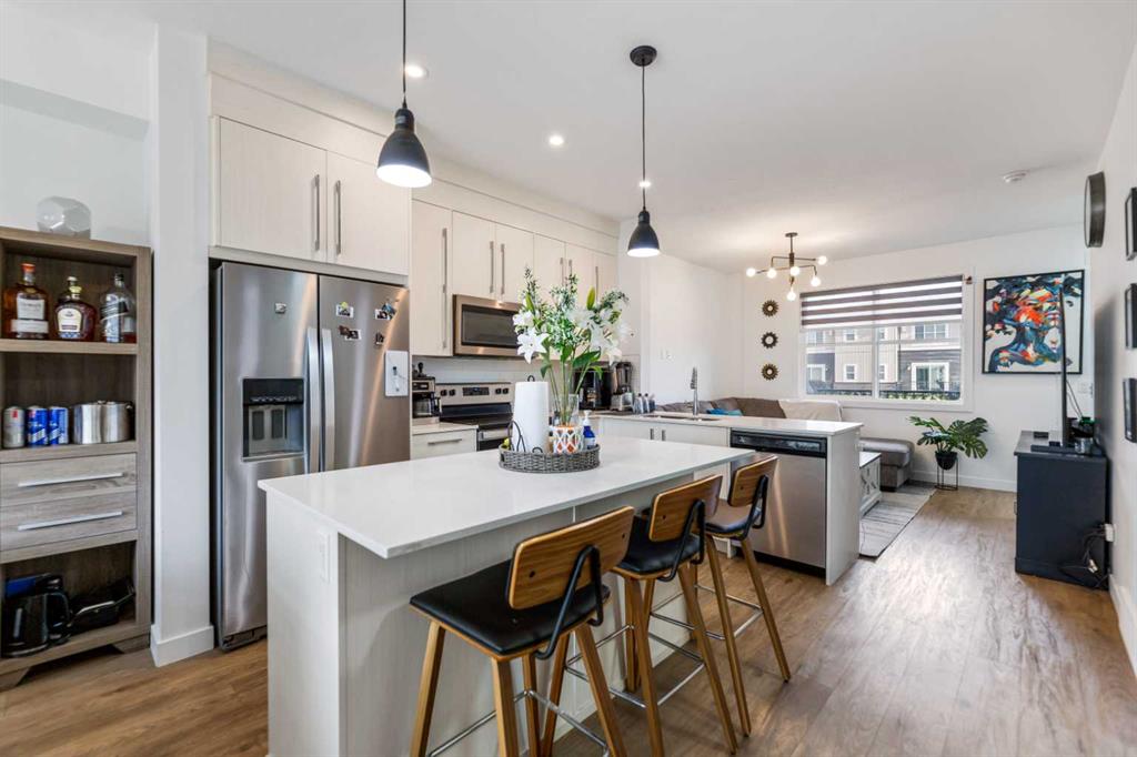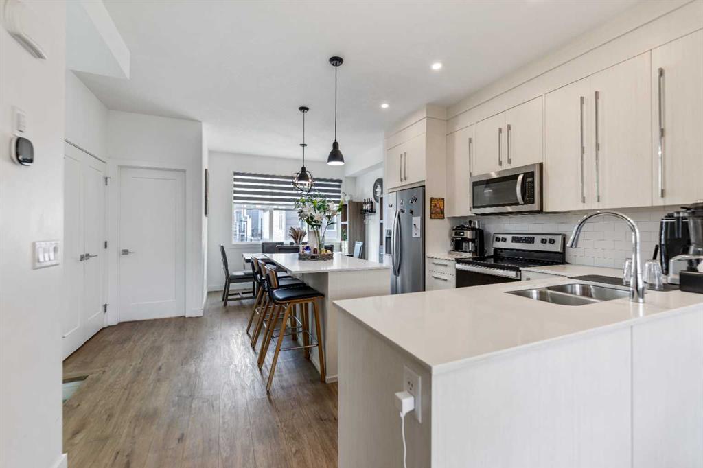 Welcome to this "State-of-the-Art," meticulously maintained home offering about 1,400 sq. ft. of developed living space. The bright & sunny floor plan is designed for modern living, featuring spacious living & dining area that easily accommodates large furniture. The well- allotted kitchen serves as the heart of the home, complete with a central island, abundant cabinetry, ample counter space, and the latest designer stainless-steel appliances. Large windows throughout the house ensure the space is glittered in natural light. Upstairs, 3 generously sized bedrooms & 2 full bathrooms, including a primary bedroom with a walk-in closet and a private 4-piece ensuite bath. For added convenience, the laundry is thoughtfully located on the same level as the bedrooms. Outdoor living is highlighted by an impressive, large private balcony—perfect for hosting guests or relaxing long summer evenings & sunny winter days. This home includes an attached 2-car garage and is ideally located minutes from the Calgary International Airport, schools, ponds, and the amenities of the Cornerstone shopping complex and major trails of the city. Ideally located close to shopping areas & plazas, ponds, schools, playgrounds, banks, Recreational Sports Complex & popular restaurants. Minutes away from Calgary international Airport. This property offers outstanding convenience for everyday living. An ideal opportunity for first-time home buyers with young kids or elderly individuals enjoying their golden years of life & investors seeking a well-kept home in a good location. Book your viewing today! Come on in and experience yourself, “WARM WELCOME”!!!!