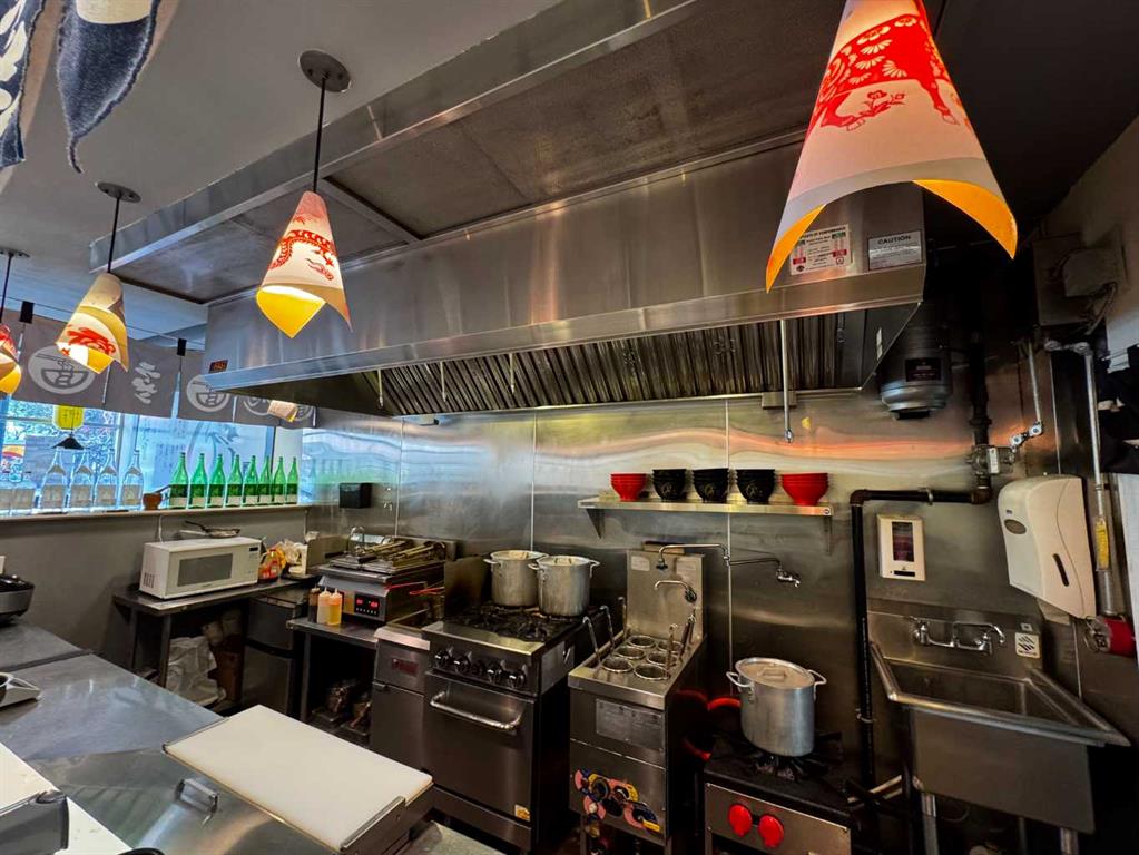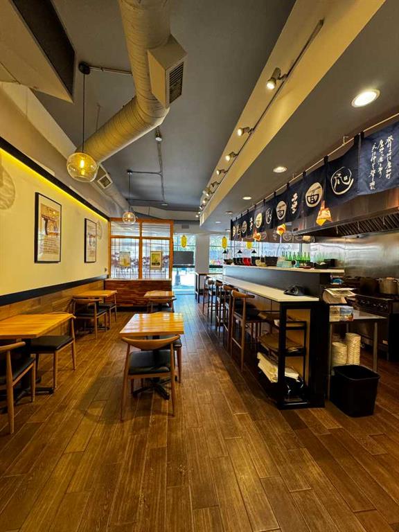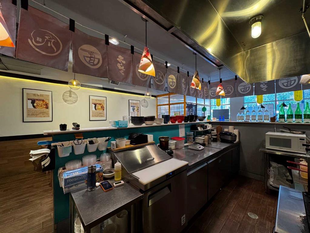 An excellent opportunity to own a well-established Japanese ramen restaurant in a prime, high-traffic area with a consistent flow of customers. The 1,239 sqft restaurant features an open-concept commercial kitchen with a great layout that enhances both efficiency and customer experience. One parking stall included (monthly fee: $250). Downstairs storage space: approx. 828 sq. ft. Royalty fee: minimum $3,000 or 5% of sales. Initial renovation and franchise investment: nearly $300,000. Lease will be expired May 31, 2026, with a 5-year renewal option The lease expires on May 31, 2026, with a 5-year renewal option available. The new owner needs to continue operating under a franchise or chain-brand concept, or it may continue as a Japanese ramen restaurant.