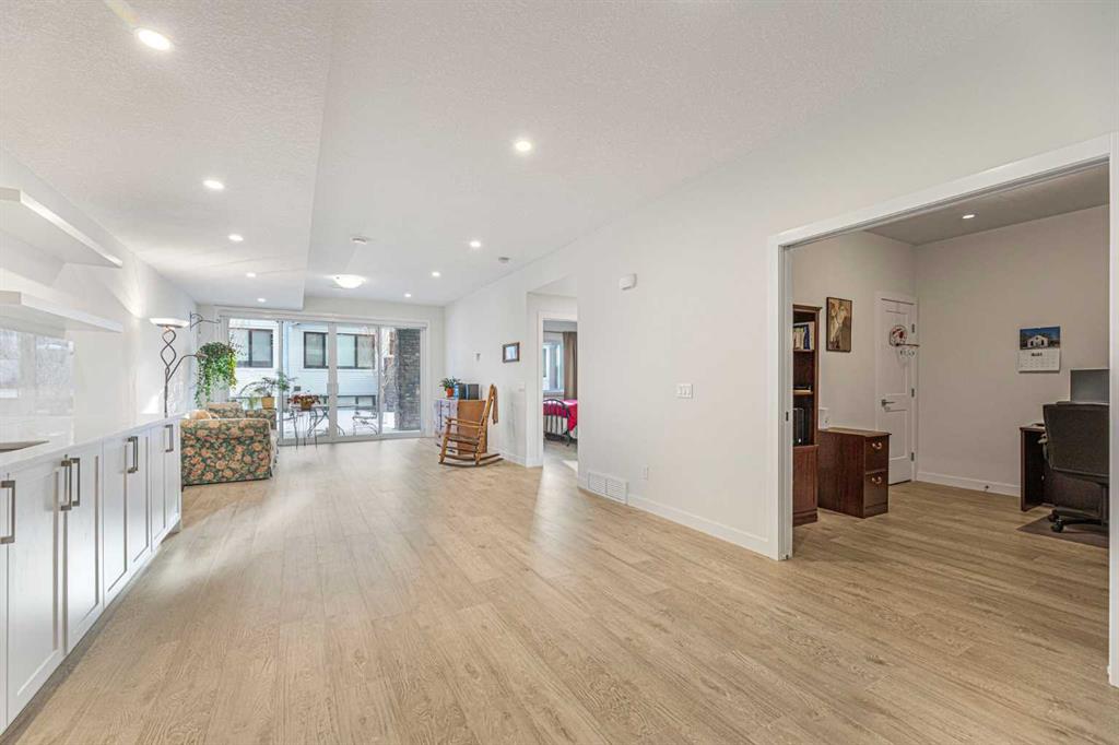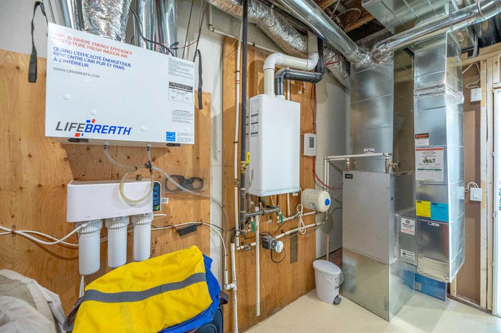 This exceptional villa bungalow combines luxury finishes, thoughtful design, and a bright, open layout that feels both modern and inviting. Meticulously maintained, this home showcases soaring vaulted ceilings and premium upgrades throughout. Discribed by the builder as a “Built Green” home featuring a on-demand hot water system and heat exchanger, plus triple pane argon filled windows for improved efficiency and lower utility costs. The front entry way leads you into a spacious foyer with room for seating. Just off the entry is a stylish half bath and a custom built-in workstation. The main living area opens up beautifully, anchored by an oversized granite island with room for bar seating, extra-large Blanco sink, under-cabinet lighting, and upgraded stainless steel appliances—including a built-in gas cooktop and dual ovens, one a Miele steam/convection oven. A large pantry and dining area make this chef's kitchen ideal for modern living. A well-designed laundry area sits at the entrance to the heated garage and includes a built-in bench and coat hooks for added convenience. The warm and inviting living room, with tones of natural light is enhanced by vaulted ceilings and expansive sliding doors that lead to a covered balcony great for entertaining in the summer. A gas line for your BBQ makes life even easier. The large primary bedroom is conveniently located off the living room and offers a two-sided walk-through closet leading to the luxurious ensuite, featuring a marble double vanity, Dietra heated tile floors, and an oversized shower with built-in bench seating. The fully finished walkout basement is bright and welcoming. A beautifully appointed wet bar with marble countertops, pantry, and full-size fridge makes this level perfect for guests, entertaining, or multi-generational living. The spacious family room offers plenty of room for relaxation or games, and a separate den with dual pocket doors adds flexible living space as a possible home office or gym. A bright lower-level bedroom and a full bathroom with soaker tub make this space ideal for visitors. The lower covered patio provides another private outdoor retreat. Located in desirable Crestmont—3-minutes to Stoney Trail and the TransCanada Highway for quick access to the mountains—this home offers unmatched convenience and lifestyle.