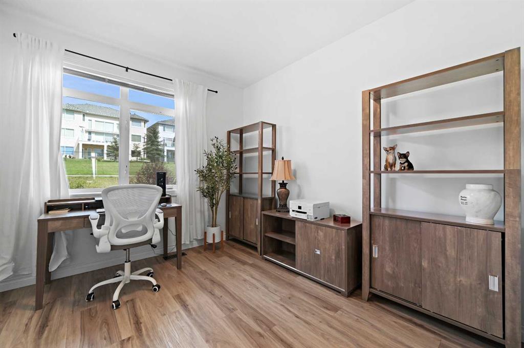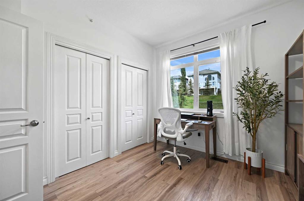 Welcome to your Rocky Ridge retreat, a two-storey condo where thoughtful design meets mountain-view magic. With over $40,000 in upgrades, this isn’t just a renovation - it’s a reinvention of space, light, and style. Step inside and you’ll feel it immediately : airy 9-foot ceilings, endless sunlight from oversized south-facing windows, and a flow that just makes sense. The main floor shines with new wide-plank luxury vinyl, modern lighting, and a completely redesigned kitchen, quartz countertops, Italian tile backsplash, new fixtures, pot lights, and yes… the popcorn ceiling is officially gone. Upstairs, the primary suite is pure calm, offering panoramic greenspace views and a sleek private ensuite. The second bedroom is generous and bright, with double closets and access to an updated 4-piece bath that feels straight out of a boutique hotel. Practical perks? Two titled underground parking stalls, a titled storage locker, and access to a fully equipped fitness centre all within a well-managed complex surrounded by parks, transit, and the best of Rocky Ridge. Whether you’re a first-time buyer, downsizer, or investor, this home checks every box: stylish, move-in ready, and filled with natural light. Elevated living starts here. Book your showing today, your next chapter in Rocky Ridge is waiting.
