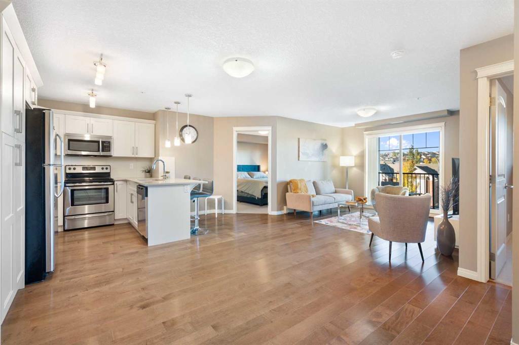 Welcome to this Impeccably Maintained & Stylishly Condo in the highly desirable community of Panorama Hills! Thoughtfully designed this Beautiful 2 bedroom, 2 bathroom condo open -concept layout is adorned with rich hardwood flooring, neutral tones, and large windows that bathe the interior in natural light. The well appointed kitchen includes modern sleek cabinetry, a full pantry, ample counter space, and stainless-steel appliances, seamlessly connecting to the spacious dining and living area—perfect for both relaxing and entertaining. Step out onto the private balcony to enjoy your morning coffee or evening sunset. The primary suite offers a walk-through closet and a full ensuite, while the second bedroom—located on the opposite side of the unit—provides privacy and flexibility for guests or a home office. Additional features include in-suite laundry, secure heated underground titled parking, and a convenient storage locker. Set in a beautifully landscaped complex, this condo offers unparalleled access to parks, schools, shopping, restaurants, and transit , all just steps from your door. Discover the perfect blend of comfort, convenience, and community in one of Northwest Calgary’s most vibrant neighbourhoods.