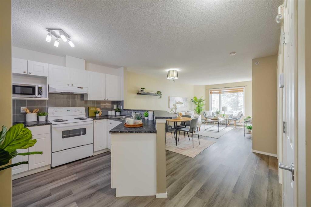 Top floor unit, bright open floor plan, newer vinyl plank flooring throughout, and a private balcony with west and south facing views, this condo is move-in ready! Enjoy a spacious kitchen fully equipped with an eat-up bar, plenty of counter space, and pantry with in-unit laundry for added convenience! The dining and living spaces flow seamlessly together, the large window and patio door allow lots of natural light to pour in. Enjoy your morning coffee or evening cocktail on your spacious balcony! Just off the living room is the generous primary bedroom with double closets and direct access to the main 4 piece bathroom. The second bedroom with room for a queen bed or could be used as an office/den completes the space. This unit comes with 1 parking stall and storage locker. On-site amenities include an exercise room, social lounge, playground and ample visitor parking. Arbour Lake community enjoys year-round lake access with tennis, boating, swimming, skating and more through it's homeowner's association. This condo is in a fantastic location! Just down the road is Crowfoot Centre with shopping, grocery stores, restaurants, a movie theater and so much more! Other close by facilities include the YMCA, a public library and C-train station with direct access to downtown making commuting a breeze! You don't want to miss out on this fantastic condo in a clean, well-managed complex in such a great location! Book your showing today!