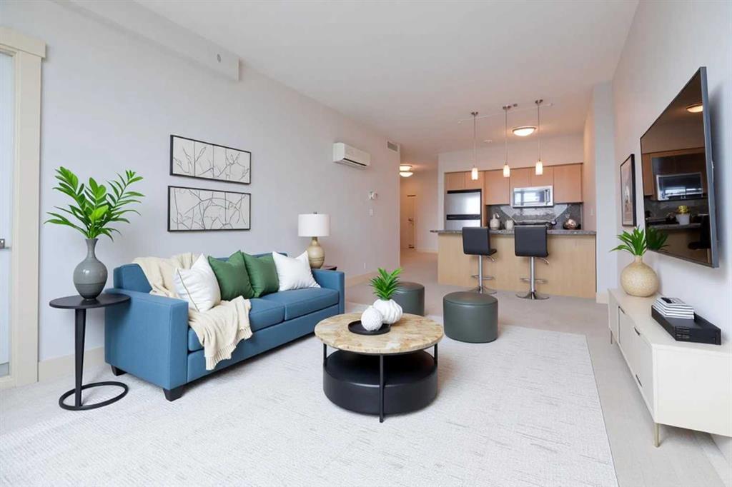 Welcome to this beautifully designed apartment offering the perfect blend of comfort, style, and convenience. This spacious unit features an open-concept layout with abundant natural light, creating a warm and inviting atmosphere throughout. The modern kitchen is equipped with sleek cabinetry, quality appliances, and ample counter space—ideal for both everyday living and entertaining. The living and dining areas flow seamlessly, providing a functional and stylish space to relax or host guests. The apartment includes generously sized bedrooms with large closets, along with a well-appointed bathroom featuring contemporary finishes. Additional highlights include in-unit laundry, private balcony, and secure building access. Also this unit is equipped with a high efficiency wall mounted Air Conditioning unit for those hot summer days. Located in a highly desirable neighborhood, you’ll enjoy easy access to shopping, dining, public transit (C-Train), parks, and other essential amenities. Whether you're a first-time buyer, downsizer, or investor, this property offers exceptional value and lifestyle appeal. Don’t miss the opportunity to make this stunning apartment your new home.