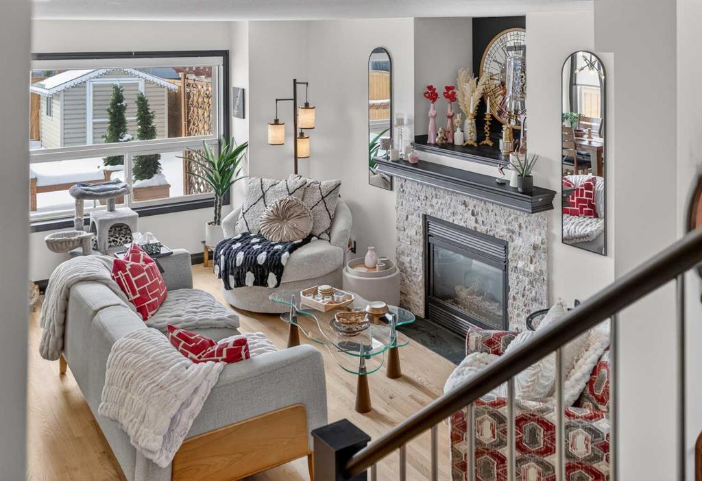 This beautifully warm and inviting home features a unique and thoughtfully designed layout, offering the perfect blend of comfort, functionality, and investment potential. Tucked away in a very quiet part of the neighbourhood, this bright and sunny property is ideally located near the airport, major roadways, and within walking distance to schools. A modern cubism-inspired chandelier welcomes you at the front entry, complemented by a stunning new front door. The main floor features an open-concept layout with a fully updated kitchen (2019), complete with newer cabinetry, quartz countertops, a stylish backsplash, updated appliances, and LED pot lighting—creating a bright and inviting space. A beautifully executed gas fireplace in the living room, along with refinished original hardwood flooring, adds to the home’s warm and homely feel. Heading upstairs via the unique split staircase, you’ll find a well-designed layout with a generous primary bedroom complete with an ensuite, while two additional bedrooms are thoughtfully positioned on the opposite side with their own full bathroom. All bathrooms have been upgraded with newer Toto toilets. This home has seen numerous upgrades, including a new concrete side walkway, refrigerator (2023), washer and dryer (2022), central A/C (2022), and a roof replacement approximately in 2020. Additional improvements include a newer fence, updated blinds, refinished hardwood flooring, LVP flooring on the upper level, and freshly painted interior walls, doors, and frames. The stunning south-facing backyard is a true highlight, offering abundant natural light and a private outdoor space that is simply priceless. A fantastic opportunity to own a well-maintained home in a desirable and convenient location.