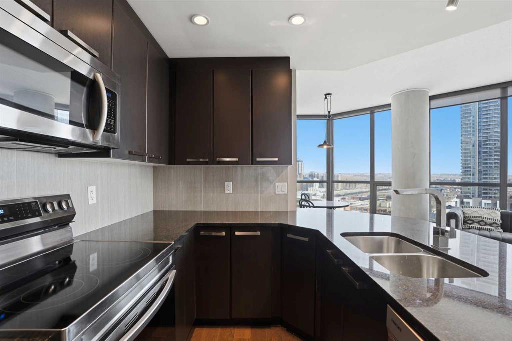 Welcome to elevated urban living in Keynote II, perfectly positioned in the heart of Calgary’s vibrant Beltline. From the moment you step inside this exceptional 14TH FLOOR residence, you’re greeted by an immediate sense of space, light, and openness that is rarely found in a two bedroom condo. Expansive FLOOR TO CEILING WINDOWS frame sweeping, unobstructed east facing views, filling the home with natural light from morning through evening. The thoughtfully designed OPEN CONCEPT LAYOUT creates a seamless flow between the kitchen, dining, and living areas, offering both comfort for everyday living and the perfect setting for entertaining. The layout is as functional as it is inviting, featuring TWO GENEROUSLY SIZED BEDROOMS POSITIONED ON OPPOSITE SIDES of the unit, each with its own adjacent bathroom. This “DUAL PRIMARY” configuration is ideal for professionals, couples, small families, or roommates seeking privacy and flexibility. At the heart of the home, the kitchen is equipped with GRANITE COUNTERTOPS and a full set of STAINLESS STEEL APPLIANCES, combining style and practicality for effortless day to day living. Beyond the interior, this home continues to deliver with a secure, heated titled UNDERGROUND PARKING STALL and an oversized titled STORAGE LOCKER, adding convenience and peace of mind. What truly sets this property apart is its unbeatable lifestyle location. With SUNTERRA MARKET conveniently located within the building and Market Bar just steps away, your daily essentials and dining options are always within reach. You’re also moments from the LRT, Stampede Grounds, BMO Centre, Saddledome (new Scotia Place Arena), and Calgary’s extensive +15 network, making it easy to stay connected to everything downtown has to offer. Residents of Keynote II enjoy access to PREMIUM AMENTITIES including a fully equipped fitness centre, guest suites, bike storage, and a beautifully designed outdoor terrace with a gas BBQ, perfect for relaxing or entertaining in the warmer months. Offering a rare combination of space, light, functionality, and location, this is a standout opportunity in one of Calgary’s most sought after buildings.