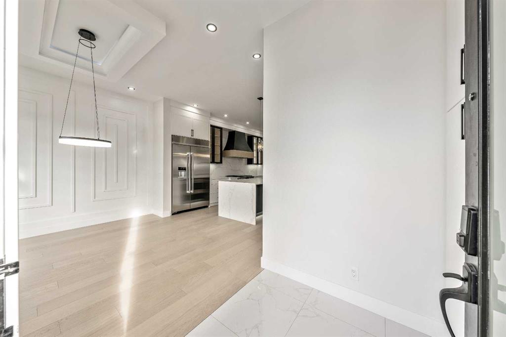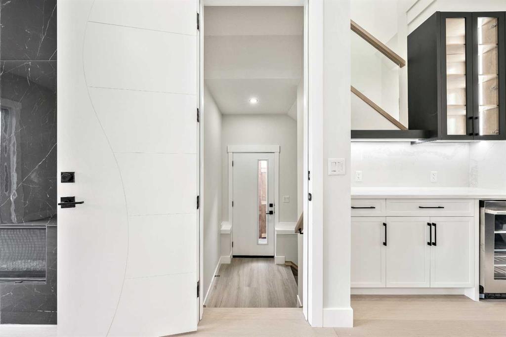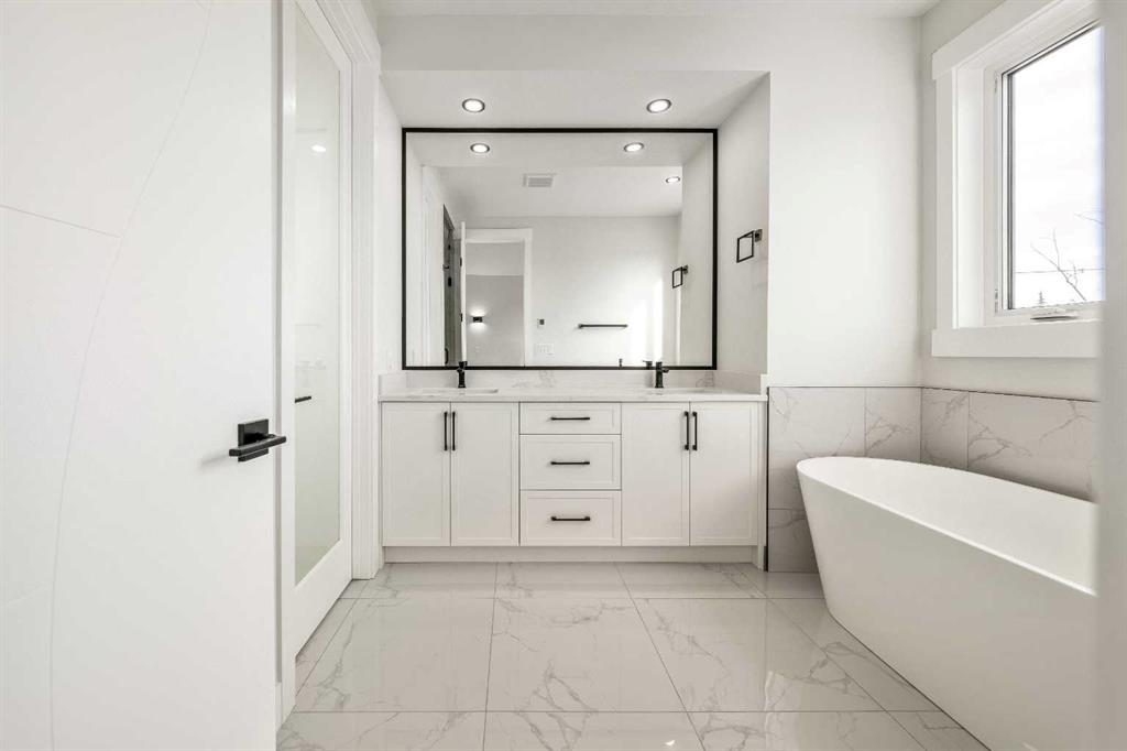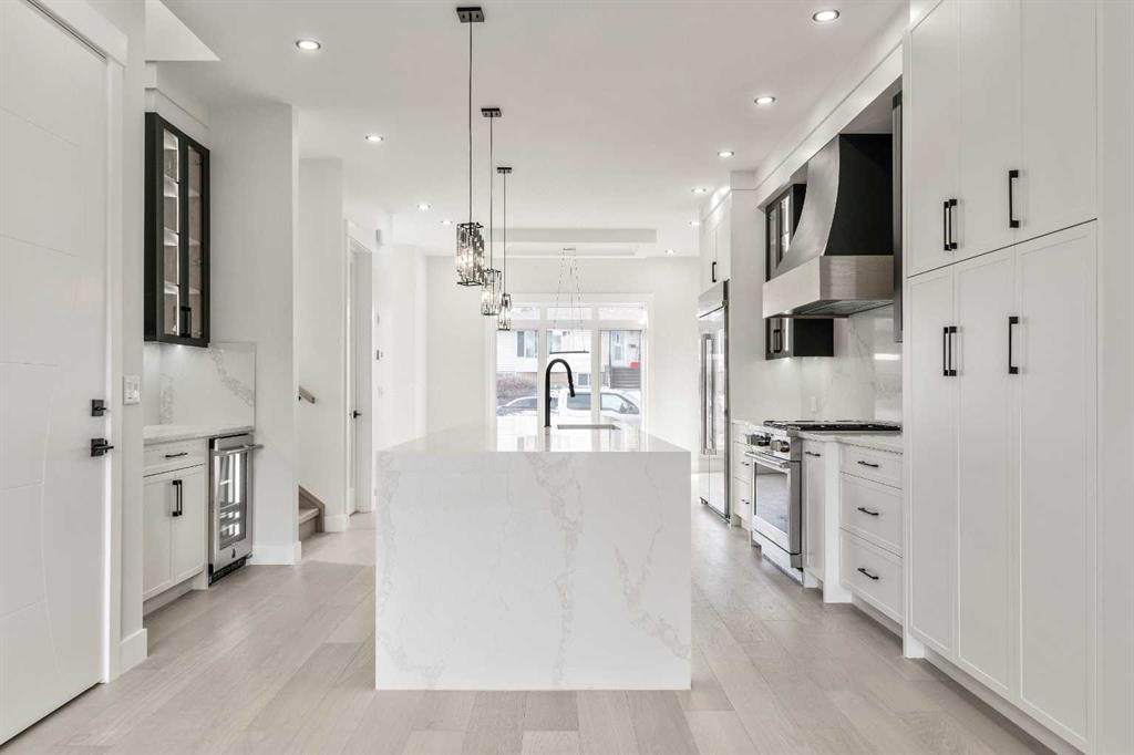 Welcome to the lap of luxury in Rosscarrock. This beautifully appointed infill (construction completion in early 2026) is within one kilometre walking distance to Westbrook C-train station, Westbrook mall, E-MART, Walmart, Starbucks, and many pubs/restuarants which makes it an ideal location with its 2 BEDROOM BASEMENT LEGAL SUITE. Have Kids with allergies? NO CARPETS THROUGHOUT. The Main floor has 10’ CEILINGS, wide front entrance, an enormous dining area to fit a harvest table, luxurious kitchen with quartz backsplash, 14' long island with a magnificent quartz countertop and dual waterfall feature and cabinet doors on both sides (plenty of storage space for all your small kitchen appliances), a show-stopping "COMMERCIAL STYLE" 36 INCH GAS RANGE, Impressive 48" FRIDGE and High-end BEVERAGE COOLER in the seamlessly situated coffee bar that is open-to-above. The Living room has an opulent 50' GAS FIREPLACE with built-ins and sliding patio doors that opens to a maintenance-free, composite plank party deck. The mud room has sitting bench and hangers, and will lead a conveniently located powder room. The highlight of the top floor is the Massive Primary bedroom with vaulted ceiling, spacious WALK-IN HIS & HER closets and a spa-like ensuite which will have a tiled STEAM SHOWER, double vanity, and a free-standing tub. The top floor is completed with a laundry room with sink, two bedrooms, one which has "cheater-ensuite" access to the common 4-piece bathroom. Every main and top floor bathroom has electric in-floor heating with their own thermostat, 200 AMP SERVICE TO HOUSE ensures there is enough power for house and a legal basement suite. The BASEMENT HAS A SEPARATE SIDE ENTRANCE, access to the furnace/mechanical room is in the common area so basement tenants do not need to be bothered/notified if you have to access the mechanicals. The basement ceiling has sound reduction features in the ceiling, hookups for a private laundry, kitchen and living room (with a gas fireplace), ITS OWN FURNACE and roughed-in in-floor heating. Did I mention TRIPLE PANE WINDOWS THROUGHOUT which are more energy efficient and improve sound insulation within the house? Other features include GFCI OUTLETS BEHIND EVERY TOILET (required for heated bidets), 200 AMP service in home, HEATED (also insulated, drywalled and painted) GARAGE WITH 200 AMP SERVICE with an EV CHARGING RECEPTACLE suitable to connect a Level 2 charging station. Photos are from a recently finished project. Taxes on completed home not yet assessed. Measurements taken from building plans and interior photos from a recent project completed by builder that will have similar finishings.