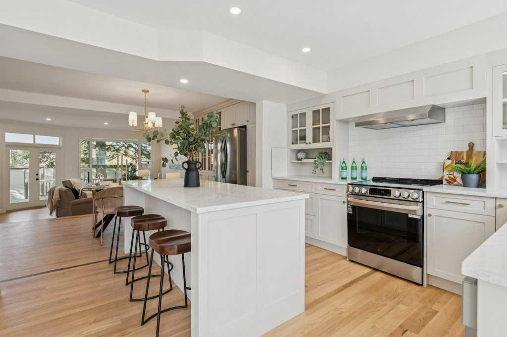 **OPEN HOUSE - Sat. Oct. 4th from 11am-2pm** Or check out our 24-7 Virtual Open House! Welcome to this stunning renovated townhome in the highly sought-after community of Varsity! Offering over 2,000 sq.ft. of stylish developed living space, this home perfectly combines modern elegance, functionality, and location. The main level features gorgeous hardwood floors throughout, oversized windows, bright modern tones, and professional design elements that create a warm, contemporary atmosphere. The spacious living room showcases a custom fireplace and overlooks the private yard with mature landscaping and a large deck—an ideal retreat for outdoor entertaining or relaxing in your own oasis. The chef-inspired kitchen is a showstopper with custom cabinetry, quartz countertops, stainless steel appliances, recessed lighting, and a charming breakfast nook, while the adjoining dining area boasts a custom pantry and display case for additional storage and style. A convenient two-piece bath and rear yard access complete this level. Ascend the open riser staircase to discover a versatile bonus room, two spacious bedrooms, and two full bathrooms. The primary suite is an inviting retreat with a walk-in closet and a beautifully updated ensuite featuring dual vanities and a walk-in shower. Additional highlights include an oversized attached single-tandem garage, ground floor laundry, and generous storage throughout. Residents also enjoy beautifully landscaped grounds, tranquil ponds, and lush greenspace within the complex, offering a peaceful setting just outside your door. All of this comes with an unbeatable location steps from Market Mall, parks, top-rated schools, and minutes to the University District, U of C, Foothills Hospital, Alberta Children’s Hospital, and major routes. This one-of-a-kind townhome offers a rare opportunity to own a beautifully renovated property in one of Calgary’s most desirable neighborhoods—don’t miss it!