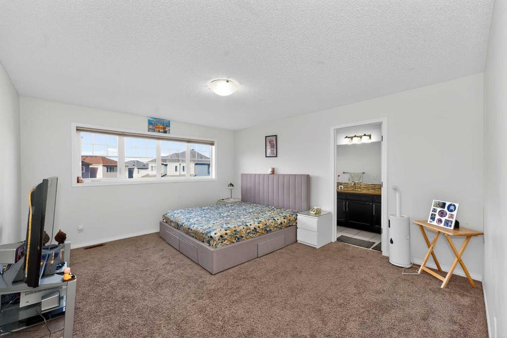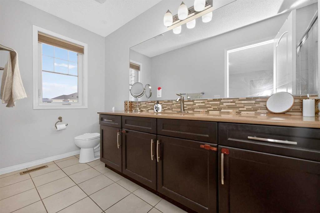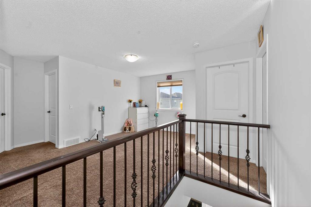 Cityscape Showstopper | 3+1 Bed | 3.5 Bath | 2,200+ SF of Luxury Living Welcome to this stunning family home in the desirable community of Cityscape. Situated on a unique pie-shaped lot with a beautifully landscaped yard, this property offers over 2,200 square feet of thoughtfully designed living space, perfect for both everyday life and sophisticated entertaining. Main Floor | Open Concept Elegance Step inside and be greeted by an abundance of natural light streaming through oversized windows, dressed with premium Hunter Douglas blinds. The main level features rich hardwood flooring and tile, creating a warm and durable space. The open-concept layout seamlessly connects the living, dining, and kitchen areas. The living room is anchored by a striking fireplace featuring a stone surround and soft ambient lighting. The gourmet kitchen is a true chef’s delight, showcasing cabinetry with glass inserts and soft-close drawers, a large central island, gleaming granite countertops, a French door refrigerator, and a gas range. A convenient powder room, mudroom area, and access to the oversized double attached garage complete this level. Upper Level | Luxurious Retreats Ascend the stunning Maple staircase with sleek black spindles to the upper floor. The primary suite is a true retreat, boasting a spacious bespoke walk-in closet and a spa-like ensuite. The ensuite features an oversized fully tiled shower with a glass door, a custom double vanity with granite countertops, and tile flooring. Two additional generously sized bedrooms, each with large windows, share a well-appointed main bathroom featuring a combined shower and bathtub. The convenience of an upper-floor custom-built laundry room with shelving adds to the home's thoughtful design. Basement | Ultimate Entertainer's Dream The fully developed basement offers an incredible space for recreation. It features a statement wet bar with a sleek quartz countertop, a large recreation area ideal for movie nights or games, and a full bathroom with a fully tiled custom shower and glass door. Features & Finishes Premium Upgrades: Hunter Douglas blinds, central vacuum, rough-in for A/C, and an upgraded tankless water heater. Location: Nestled in a family-oriented community, this home is within walking distance to shopping, local playgrounds, and schools. Outdoor Living: The private, quiet backyard is your personal oasis, enhanced by mature trees offering seclusion and tranquility. Commute: Enjoy quick and easy access to downtown. This move-in ready home is a true gem. Don’t miss your opportunity—schedule your private showing today!