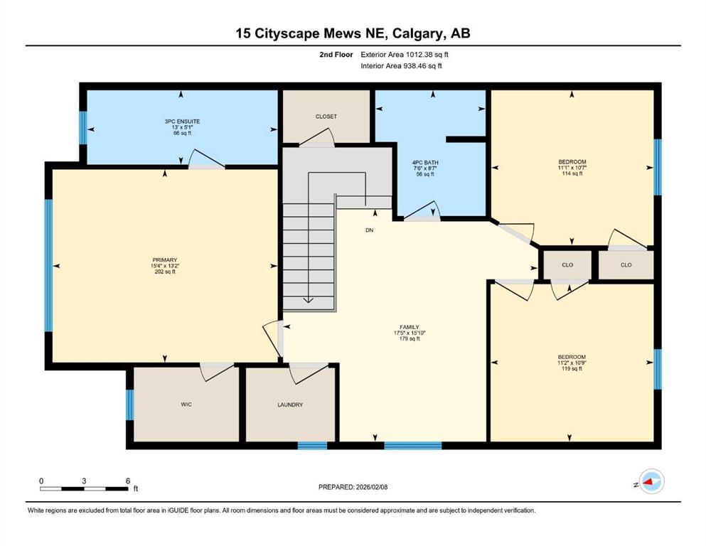 | 3pc Ensuite bath | 5`1" x 13`0" | Second |