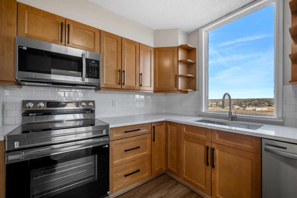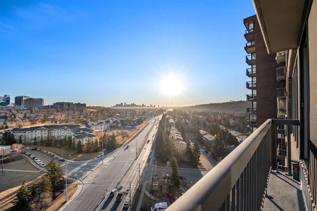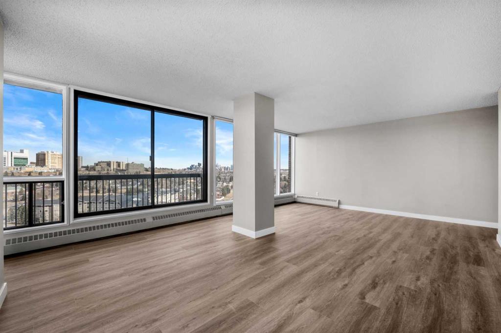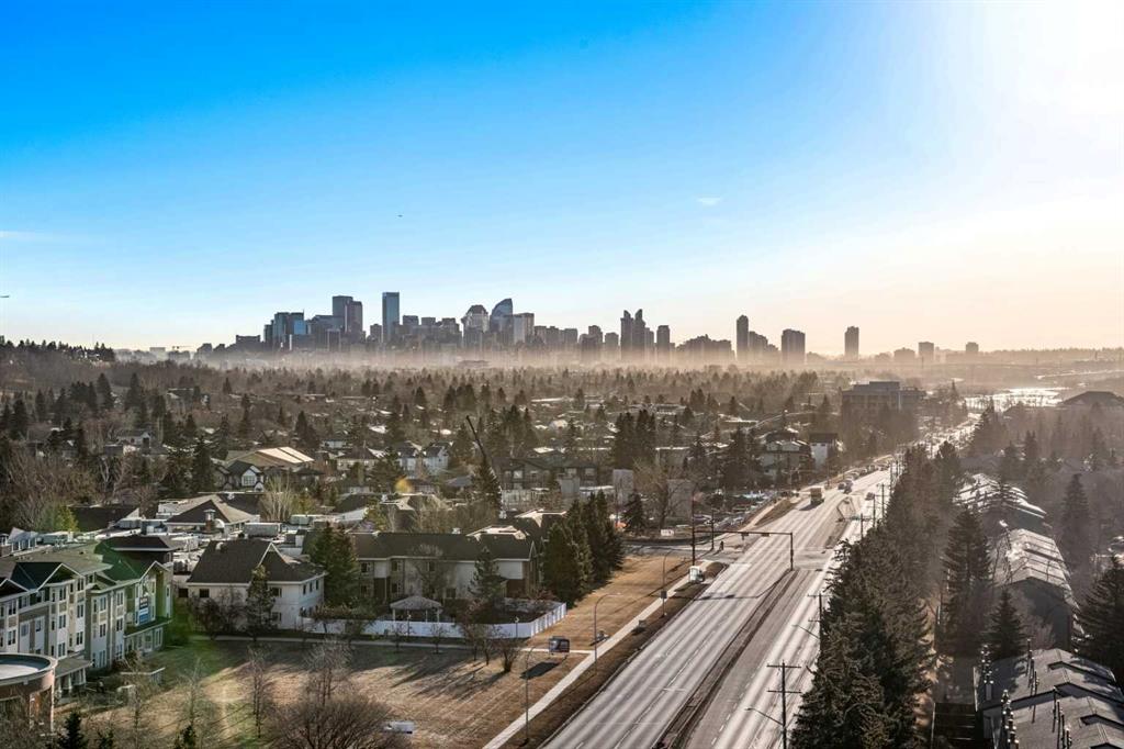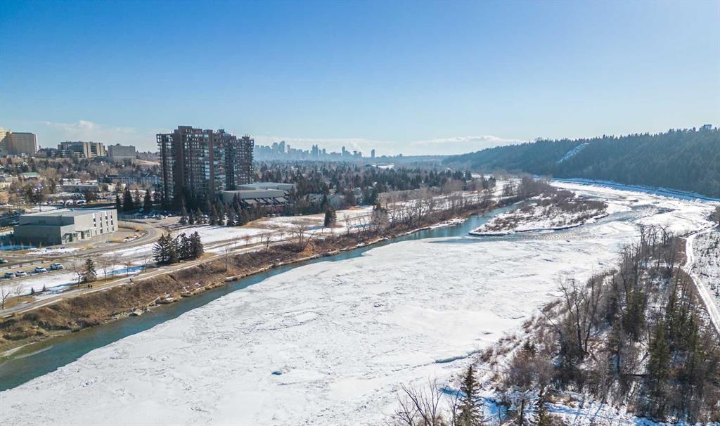 Welcome to Riverside Towers in Point McKay, one of Calgary's most desirable inner-city 18+ high-rise communities, perfectly situated along the banks of the Bow River and just minutes from downtown. This updated 2-bedroom, 2-bathroom corner unit feels like a luxurious hotel and is just minutes from downtown. It boasts stunning floor-to-ceiling, 180-degree panoramic views of the Calgary skyline and the scenic northwest rolling hills. Inside, the bright and open layout has been freshly painted, creating a functional and inviting space perfect for everyday living and entertaining. Thoughtful updates include wide neutral luxury vinyl plank flooring throughout, a beautifully renovated kitchen with solid wood cabinetry featuring dovetail drawers, imported quartz countertops, a tiled backsplash, and brand-new stainless steel appliances. Natural light fills the space, highlighting the modern finishes and expansive views. The primary bedroom serves as a private retreat, complete with a walk-in closet and a 2-piece ensuite. The generously sized second bedroom is versatile, suitable for a roommate, guest bedroom, or home office. The main bathroom features an oversized vanity with ample storage and a walk-in shower. Additional conveniences include in-suite laundry, extra in-suite storage, and upgraded lighting throughout. This home comes with one underground heated and secured parking stall, a separate storage locker, and access to a car wash bay in the parkade. Residents benefit from 24-hour concierge service, enhancing security and fostering a true sense of community. The amenity-rich complex includes access to a fitness center with a pool, a liquor store, a dental center, a library, an indoor golf range, a hot tub, a spa, and indoor pickleball courts currently under construction (discounted membership available). You will never want to leave! Located just steps from the Bow River pathway system, Edworthy Park, Foothills and Children's Hospitals, the University of Calgary, and with quick access to downtown and the mountains, this is urban living at its finest and did i mention the building is super pet friendy? Whether you're enjoying daily river walks or taking advantage of the unbeatable location, this home offers exceptional lifestyle, comfort, and value. Book your private showing today.