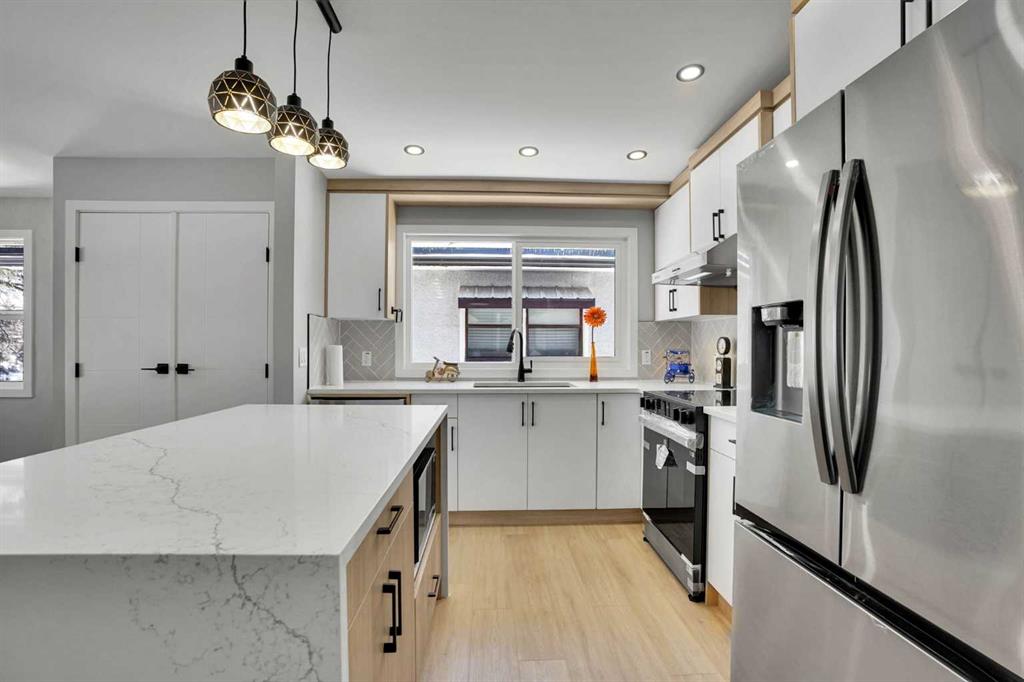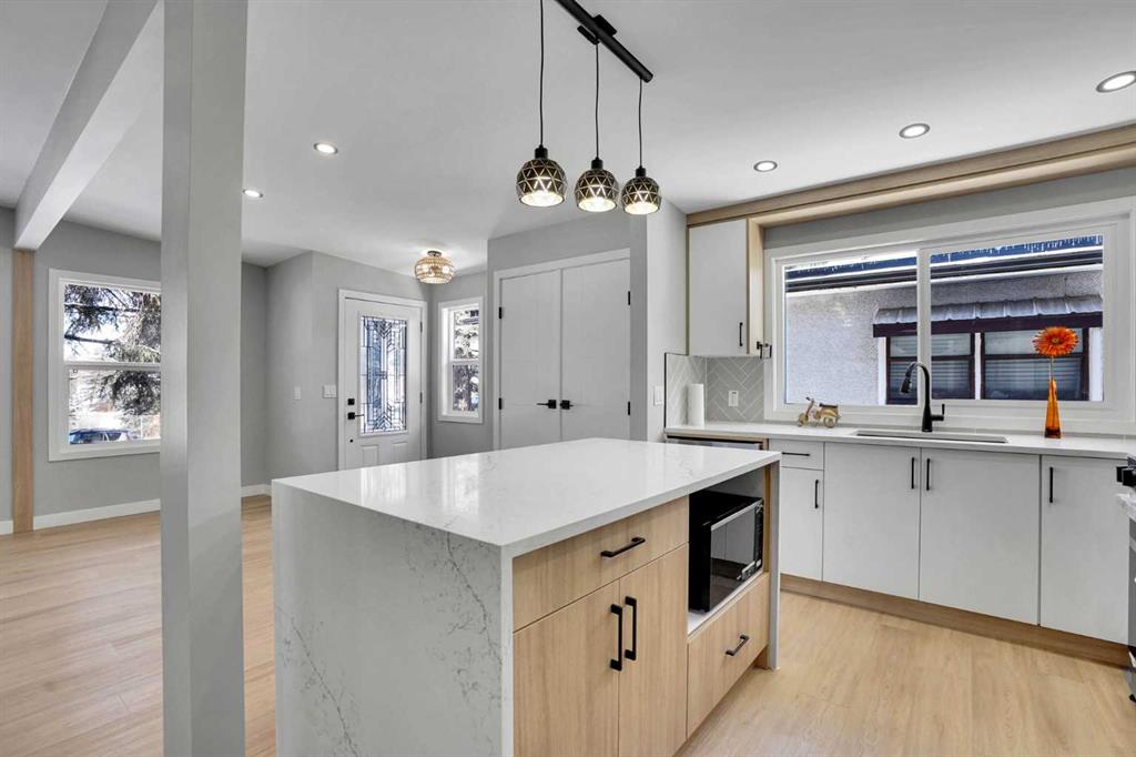 Welcome to this extensively renovated semi-detached bungalow in the highly desirable community of Capitol Hill NW, Calgary. Perfectly positioned facing Confederation Park, this home offers an exceptional inner-city lifestyle with easy access to 14 Street NW and 16 Avenue (Trans-Canada Highway), and is just minutes from Downtown, schools, and North Hill Centre. This impressive property features 4 bedrooms, 2 bathrooms, and a double detached garage, along with a fully developed 2-bedroom legal basement suite—ideal for generating rental income or accommodating extended family. Upon entry, you are welcomed by a spacious foyer leading into a bright and modern open-concept main floor. The upgraded kitchen showcases brand-new stainless steel appliances and a stunning waterfall island, overlooking the spacious living and dining areas—perfect for everyday living and entertaining. Large windows allow an abundance of natural light to fill the space, enhancing the open and airy feel. The main level also offers two generously sized bedrooms, a 4-piece bathroom, and conveniently located laundry, completing this level. The fully finished basement legal suite features a separate entrance, two spacious bedrooms, a modern kitchen with stainless steel appliances, a 4-piece bathroom, and a large recreation/living area with large windows, offering excellent functionality and income potential. Outside, the property is complemented by a double detached garage, fully insulated and equipped with additional pot lights, along with a spacious backyard—perfect for relaxing or hosting summer BBQs. Located in one of Calgary’s most sought-after inner-city communities, this move-in-ready home combines modern upgrades, income potential, and an unbeatable location. Book your private showing today.