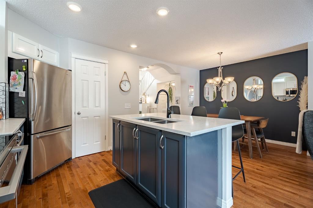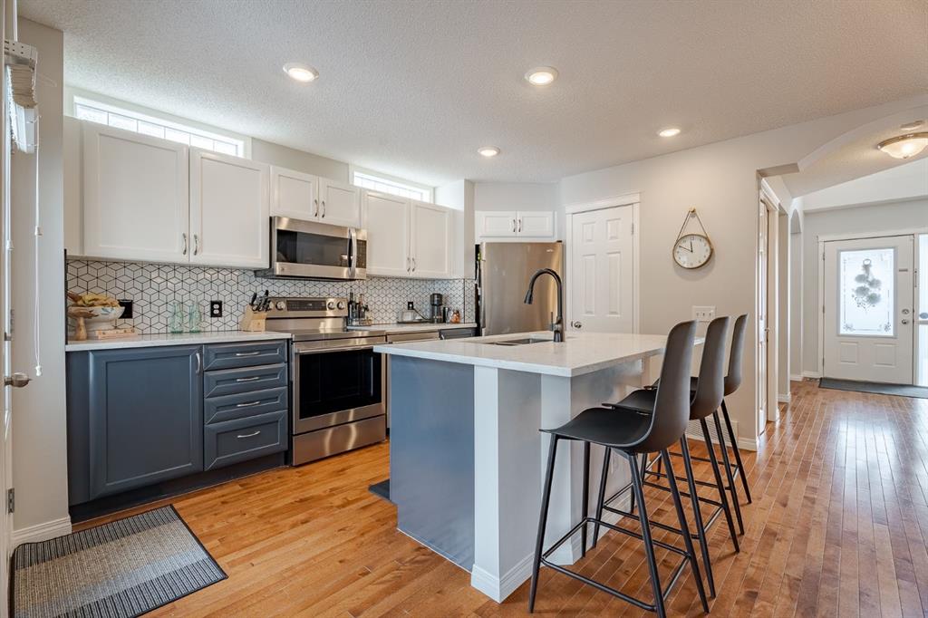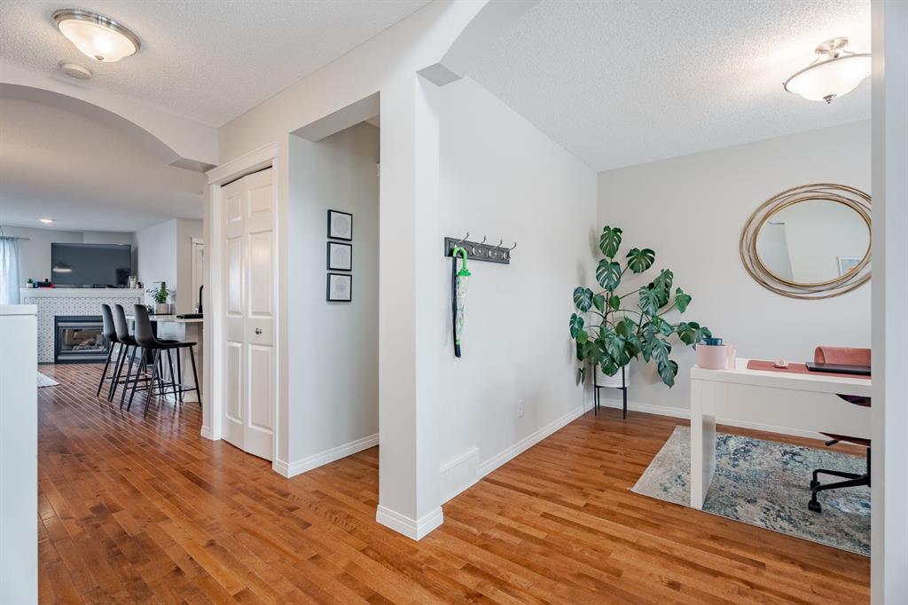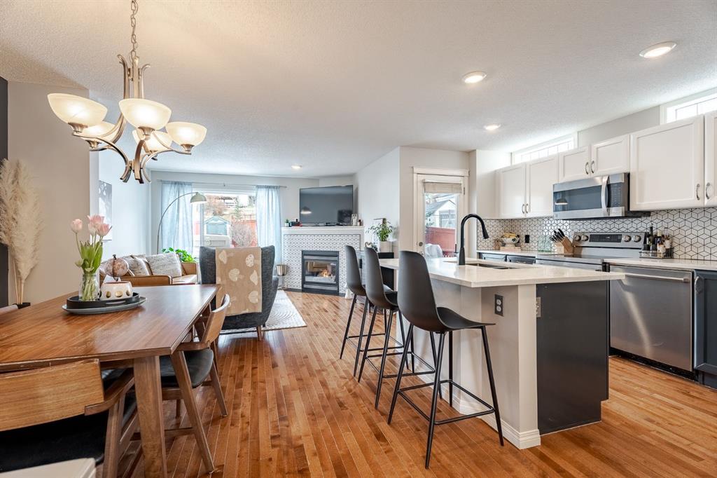 Welcome to this fantastic detached home offering exceptional value in the highly desirable community of Tuscany. With four bedrooms, three bathrooms, and a fully developed layout on all levels, this home is perfectly suited for a growing family and is truly move-in ready. The main floor features a bright, open-concept design with beautiful hardwood flooring throughout. The kitchen is both stylish and functional, showcasing stainless steel appliances, granite countertops, updated cabinetry, and a modern tile backsplash that complements the cozy corner fireplace in the living room. Designer paint colours add a fresh, contemporary feel throughout the space. A functional dining area, convenient two-piece bathroom, and a versatile main floor office/flex space complete this level. Upstairs, the spacious primary suite is its own private oasis featuring a walk-in closet, a four-piece ensuite with a large soaker tub, and a relaxing private sitting area. Two additional generously sized bedrooms and another four-piece bathroom complete the upper level. The fully developed lower level offers a massive recreation area—perfect for a home gym, theatre space, or family games room. You’ll also find a fourth bedroom, laundry room featuring a sink and two separate areas ideal for storage. Step outside to enjoy the fully landscaped, spacious yard featuring a massive deck; ideal for entertaining. There is also a storage shed and ample space off the alley to build your dream garage. Recent updates include a new stove (2025), washer and dryer (2023), shingles (2021), granite countertops throughout (2023), tile backsplash (2023), and new faucets. The furnace and fireplace were also regularly maintained and recently serviced in December 2025. This move-in ready home offers space, comfort, and incredible potential in one of northwest Calgary’s most sought-after communities. Residents enjoy access to the fantastic Tuscany Club, featuring a splash pad, skating rink, skateboard/bike track, gymnasium, and a wide variety of kids’ programs. The home is also just steps from miles of walking, jogging, and cycling pathways overlooking stunning Rocky Mountain views, and is conveniently close to schools, parks, and shopping. Don’t miss out on your opportunity to call this incredible property home!