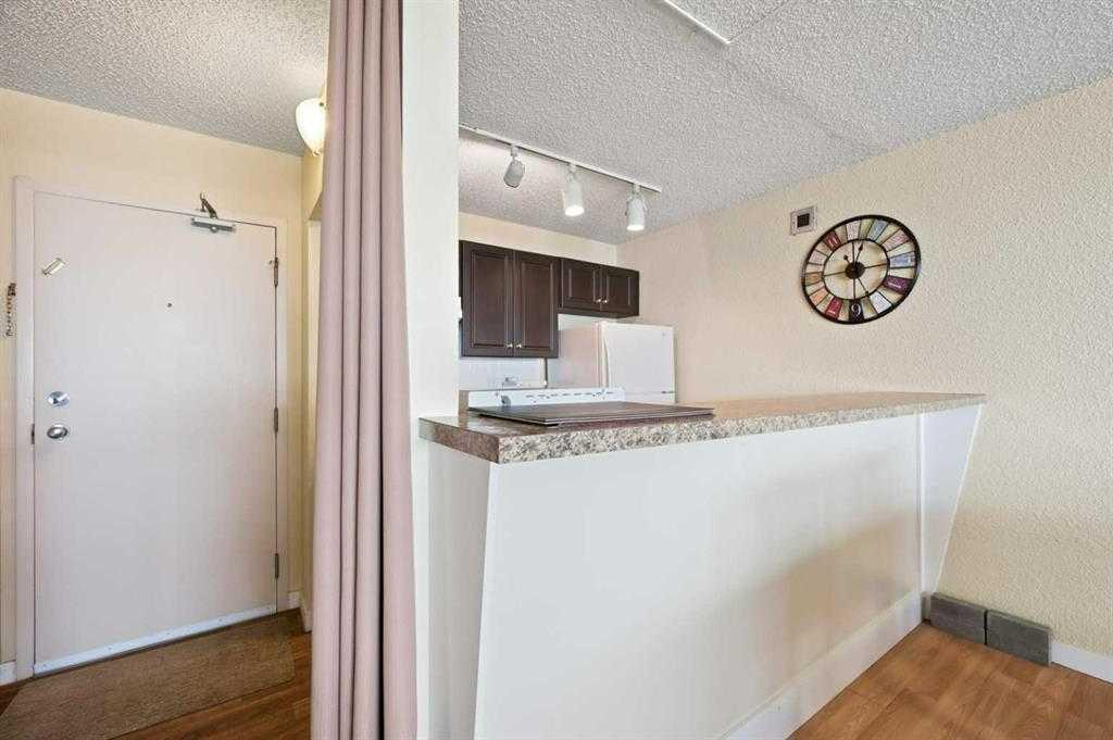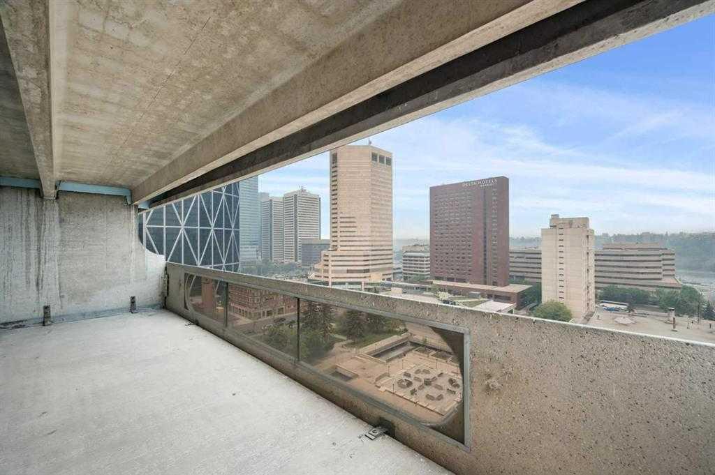 Bright End-Unit with Exceptional Views + Oversized Balcony This spacious End-unit one-bedroom condo offers unbeatable downtown living with a approx.. 275 sq. ft. balcony showcasing panoramic views of the city, river, and skyline. A stunning round feature window adds architectural character and floods the home with natural light. Just steps from City Hall, this spacious, open-concept suite includes secure covered parking and access to a full suite of amenities: a fitness centre, sauna, racquet court, three elevators, on-site management, free laundry on every floor, garbage chute, and comprehensive recycling/compost program. Perfect for first-time buyers, professionals, or investors seeking a bright, well-designed unit in a prime location. Easy to view! Note: Photos were taken prior to previous tenant's occupancy to maintain privacy.