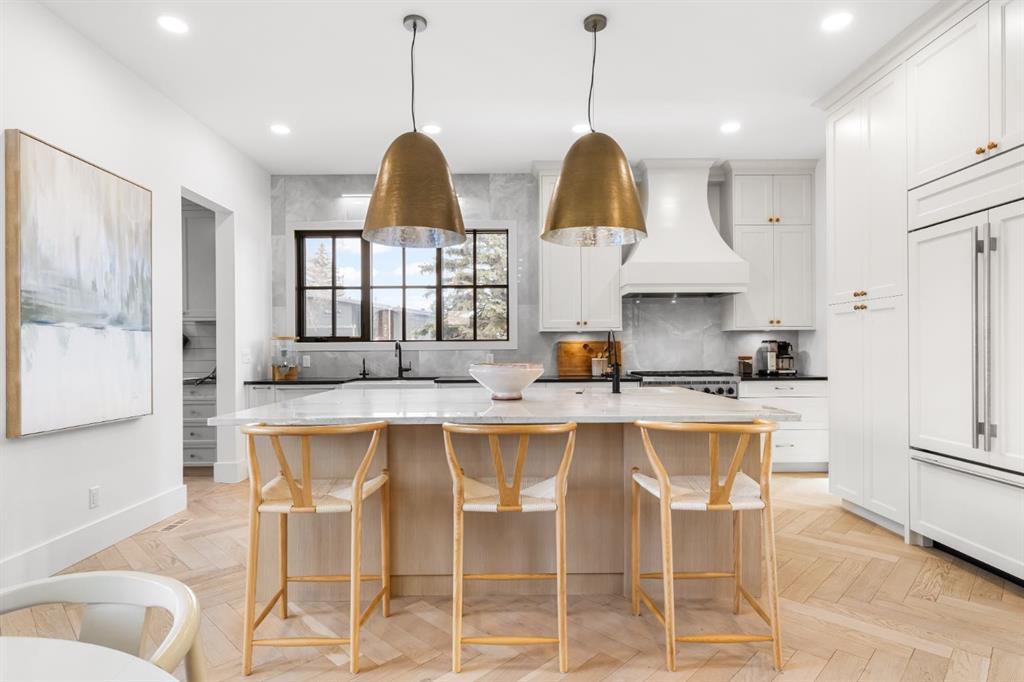 Set on one of Altadore’s most coveted tree-lined streets, this exceptional 3,339 sq. ft. residence sits on a rare 60’ x 120’ corner lot with a playground literally in the backyard and Sandy Beach, river pathways, and off-leash dog parks just steps away. Designed for both everyday living and entertaining, the home offers a timeless centre-hall floor plan with refined, functional spaces throughout. The main level features a professional-grade kitchen with walk-in pantry, a welcoming living room, formal dining area, private den, and seamless indoor-outdoor flow—ideal for hosting at any scale. Upstairs, you’ll find four bedrooms, including a spacious primary retreat with a spa-inspired ensuite and an impressive walk-in closet—perfectly positioned for privacy and comfort. Sliding patio doors open to a covered outdoor living area complete with built-in BBQ station and radiant heaters, overlooking an additional uncovered patio with a built-in fireplace—an entertainer’s dream year-round. The over-height triple car garage (12’ ceilings) easily accommodates three car lifts, and the corner-lot driveway provides the perfect setup for kids’ hockey games or basketball. The fully developed basement adds even more versatility with a large recreation room, built-in wet bar, wine room, exercise room, bedroom, bathroom, and ample storage. Built by inner-city specialist Calista Homes, this is a rare opportunity to own a thoughtfully designed, family-friendly home on one of Altadore’s best streets—where lifestyle, location, and craftsmanship come together effortlessly.