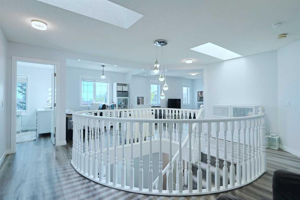 Knocking it out of the park is this beautifully renovated home tucked away in this quiet cul-de-sac in the highly-desirable golf course community of the Hamptons. Built by Sundance Homes, this extensively upgraded two storey enjoys vinyl plank floors & central air, total of 5 bedrooms + den, stunning designer kitchen with granite countertops & some of the improvements include interior paint & lighting, bathrooms, appliances & all polyB piping replaced with PEX. Wonderful family home featuring an expansive living room with gas fireplace & large picture window, separate formal dining room, breakfast nook with built-in seating & dedicated home office. The sleek new kitchen is a sight-to-behold, with its oversized central island & soft-close custom cabinetry, tile backsplash & stainless steel appliances including Fulgor Milano convection oven, Dacor gas cooktop & Bosch dishwasher. Upstairs on the 2nd floor are 3 terrific bedrooms & 2 full bathrooms, highlighted by the owners’ retreat with walk-in closet – complete with built-in organizers, & gorgeous ensuite with heated floors & free-standing soaker tub, granite-topped double vanities & oversized shower. Between the bedrooms is the open concept landing with 2 skylights & multi-purpose loft area…ideal as a lounge/sitting room, play area for the kids or study. The lower level – with high ceilings, is finished with 2 bedrooms, large rec room, storage room & renovated bathroom. Main floor laundry/mudroom with LG washer & dryer, built-in lockers, sink & granite countertops. Completed in the fall of 2021, among the extensive renovations: granite counters, kitchen & laundry room (including the appliances), interior paint & lighting, baseboards & interior doors, PEX piping, all the bathrooms & vinyl plank floors on the main & 2nd floors. Almost 8,000sqft pie lot…fully fenced & landscaped, complete with underground sprinklers, storage shed & deck with natural gas line for your BBQ. Truly incredible home here in this prime location within walking distance to the Hamptons School & bus stops, just minutes to the golf course & all neighbourhood amenities, shopping at the Hamptons Co-op & Edgemont Superstore plus quick easy access to schools & parks, major retail centers & hospitals, University of Calgary & downtown.