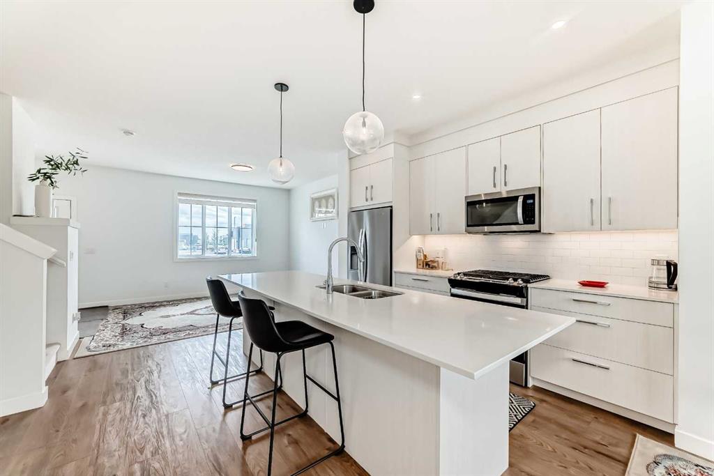 NEW PRICE DROP ! Welcome to easy, low-maintenance living in the sought-after community of Cornerstone. This stylish and well-kept townhome, built by Truman Homes, offers modern comfort without the burden of condo fees — a rare find for buyers looking for value and freedom. Still less than two years old, this home features 3 bedrooms, 2.5 bathrooms, and a layout designed for both function and style. The main floor is bright and airy, with an open-concept living space, large windows, and a modern kitchen equipped with cream cabinetry, stainless steel appliances, a gas stove, and a large central island. Upstairs, enjoy a spacious primary suite complete with a walk-in closet and double-sink ensuite. Two additional bedrooms, a full bath, and convenient upstairs laundry round out the upper level. The basement remains unfinished, ready for your personal touch — whether it's storage, a home gym, or future living space. Outside, you'll love the private backyard – perfect for relaxing or letting pets out – plus a double detached garage, offering secure parking and extra storage. All this, with no condo fees and minimal upkeep. Just steps away from everyday essentials like Chalo FreshCo, Shoppers Drug Mart, and Dollarama, and with quick access to parks, schools, and major roads, this location is ideal for busy lifestyles. A newer home, no condo fees, a backyard, and a garage — this is the total package. Move in and enjoy the freedom of owning without compromise.