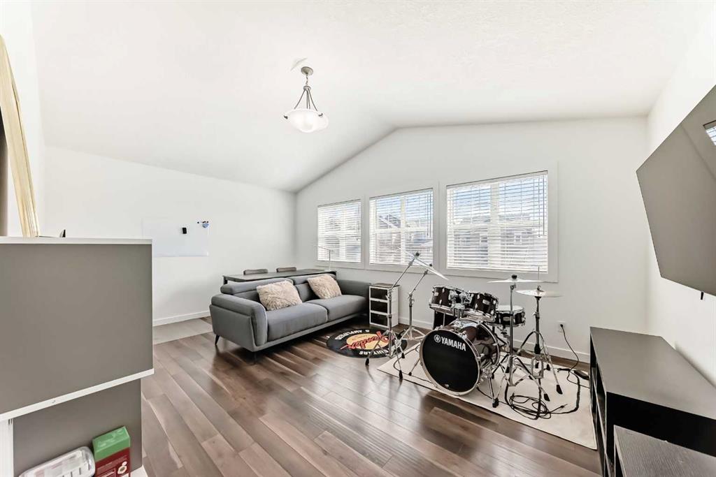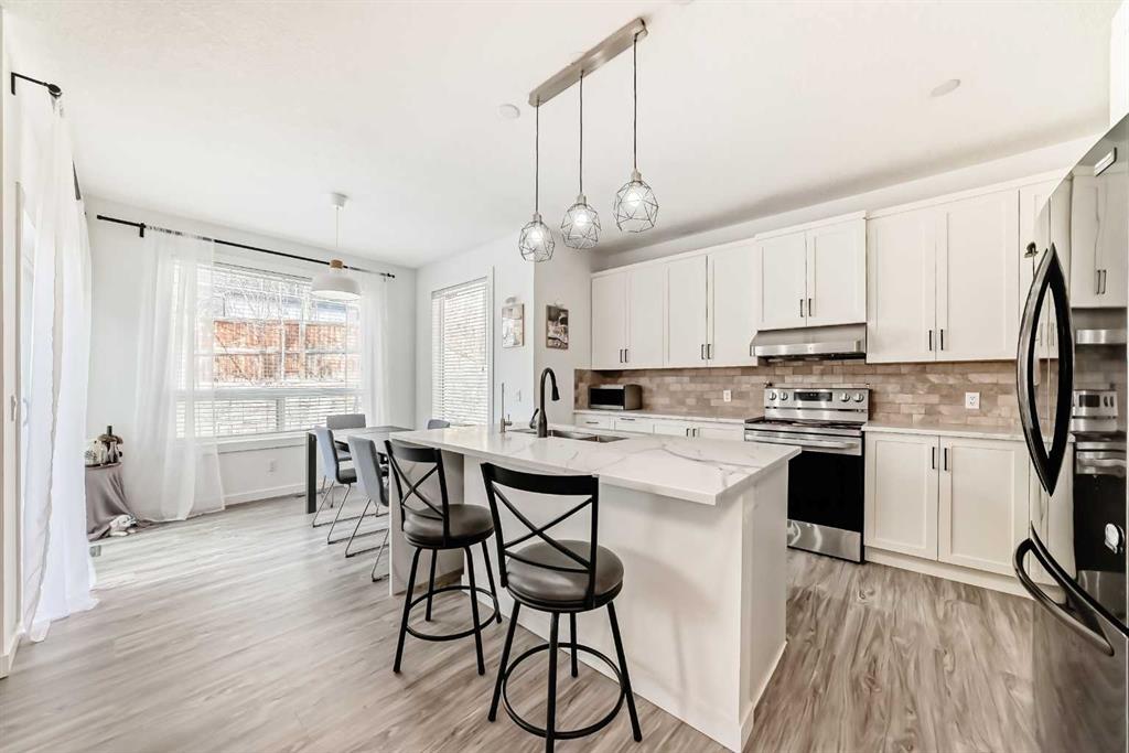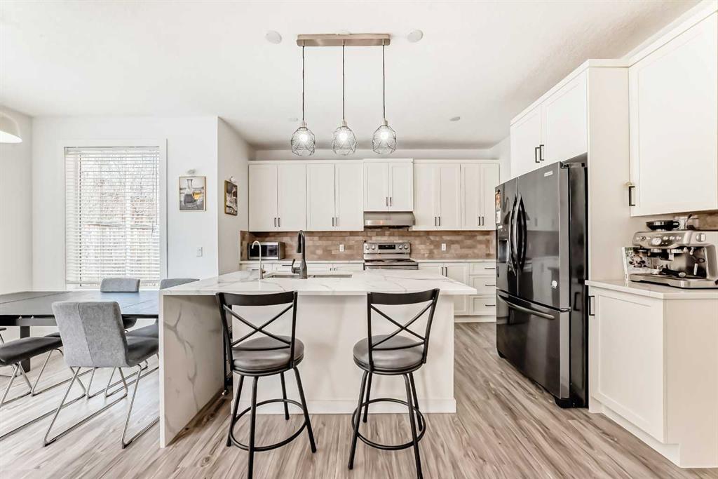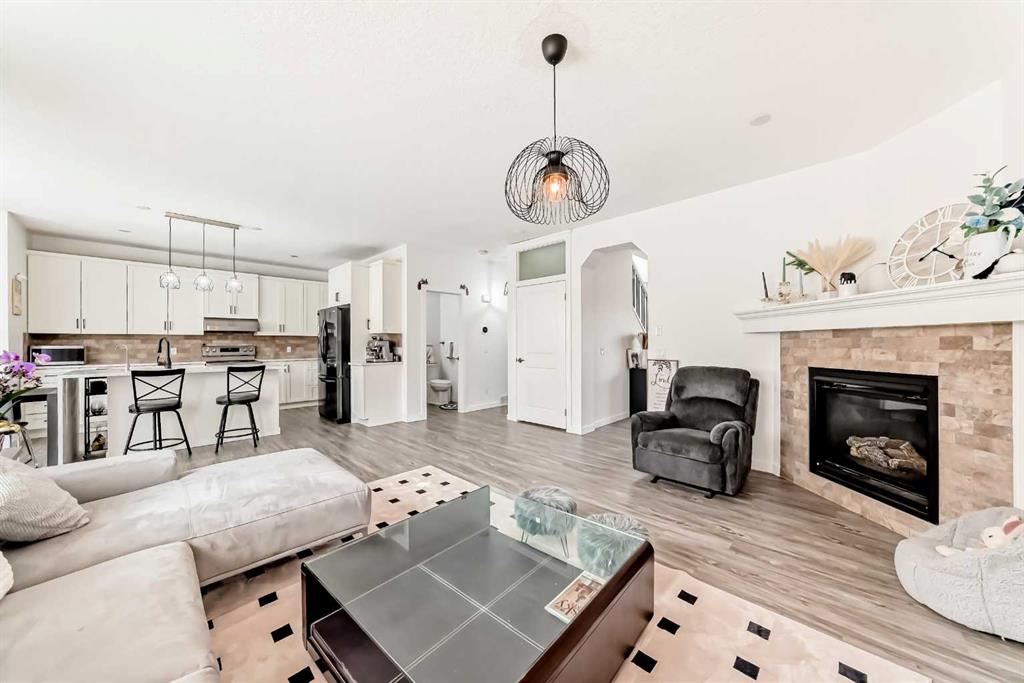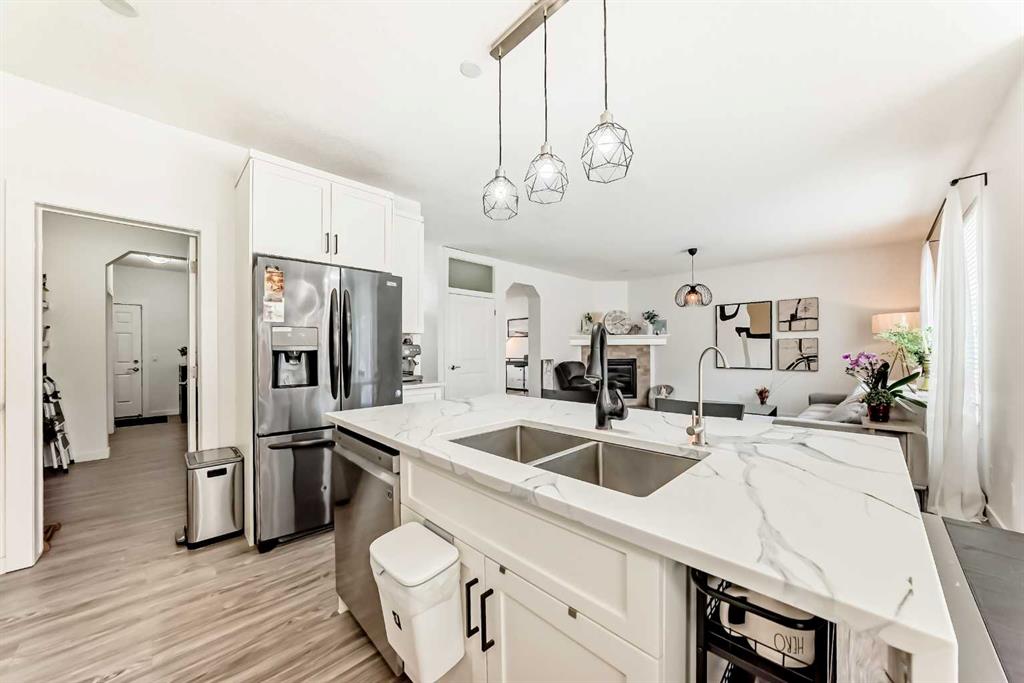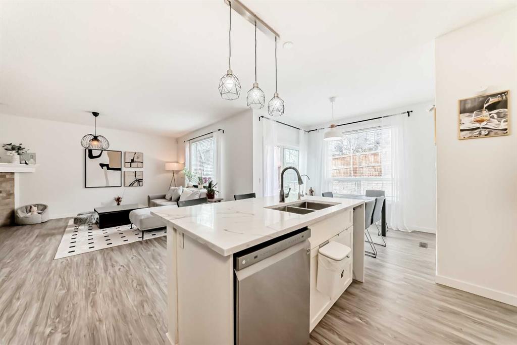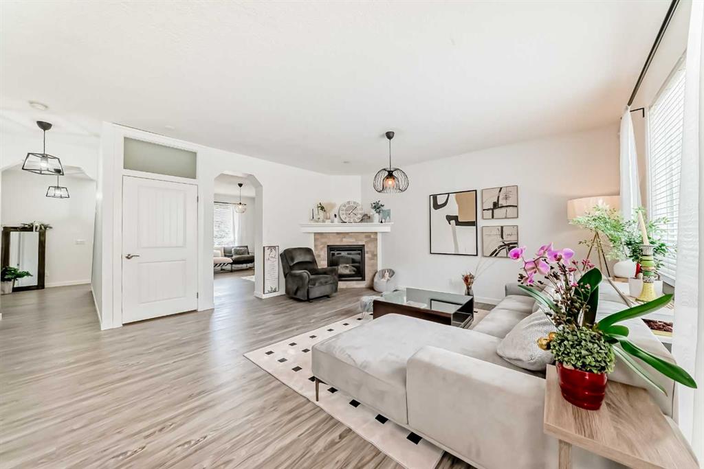 Welcome to this beautifully appointed family home in the highly desirable community of Aspen Woods. Thoughtfully designed, this two-storey residence offers a perfect blend of everyday comfort and stylish upgrades, ideal for modern family living. Situated in one of Calgary’s top school districts, the home also provides convenient access to the C-Train, major roadways, and is just minutes from Aspen Landing Shopping Centre, where you’ll find a variety of shops, dining options, and essential services. Natural light fills the home throughout the day. Enjoy sunny mornings on the south-facing front porch, while large rear windows bring in abundant light to the living spaces and backyard. The main floor features 9-foot ceilings and durable vinyl flooring throughout. The well-designed kitchen is equipped with quartz countertops, stainless steel appliances, a central island with an eating bar, and a generous walk-through pantry with built-in shelving. The dining area opens directly to the backyard, making it perfect for both everyday living and entertaining. The cozy living room is anchored by a corner gas fireplace, while a versatile den/flex room and a 2-piece bathroom complete this level. Upstairs, a bright south-facing bonus room offers additional living space for family use. The primary bedroom includes a walk-in closet and a 4-piece ensuite featuring a soaker tub and separate shower. Two additional bedrooms, a full bathroom, and a convenient upper-floor laundry room provide comfort and functionality for the whole family. The fully finished basement expands the living space with a large recreation room, an additional bedroom, a 4-piece bathroom, and a den—ideal for guests, a home office, or hobbies. Over the past few years, the home has seen numerous upgrades, including new main floor lighting, updated toilets, quartz countertops, range hood, water softener, furnace, air conditioning, and a radon mitigation system. Combining a prime location, thoughtful layout, and valuable updates, this home offers an exceptional opportunity to enjoy comfortable family living in Aspen Woods.