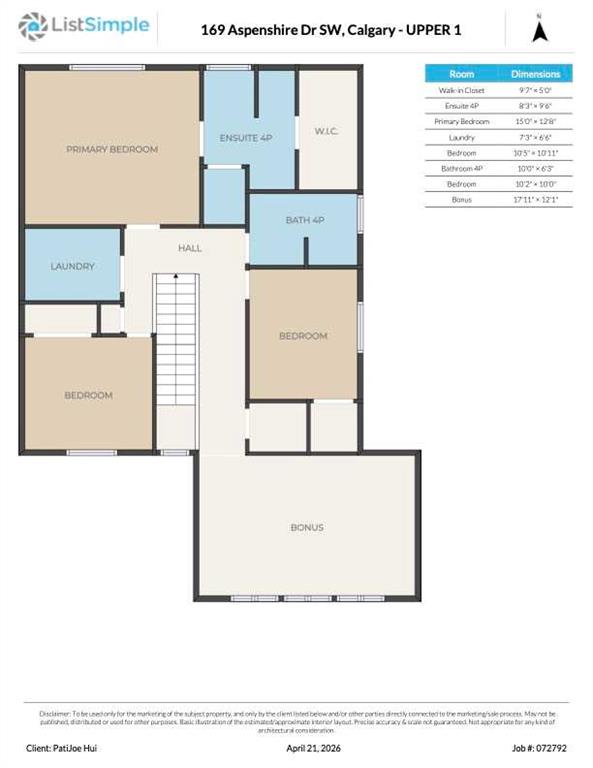 4pc Ensuite bath 8`3" x 9`6" Upper