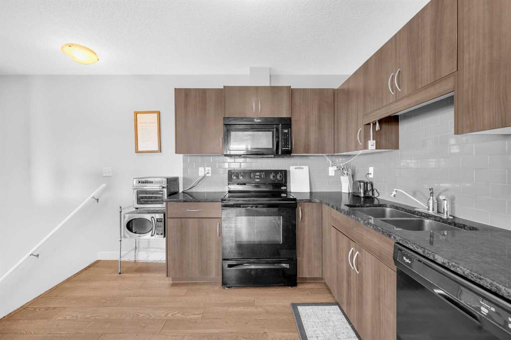 Welcome to this stylish townhome located in the highly sought-after community of Sage Hill. The modern kitchen is a true highlight, featuring granite countertops, ceramic glass backsplash, custom cabinetry, upgraded appliances, LED lighting, and an undermount sink. The spacious living room is filled with natural light from large windows and offers fantastic views, along with direct access to a private patio—perfect for summer BBQs and entertaining. This home offers a large guest bedroom and a generous master bedroom, both conveniently situated near the kitchen. The upgraded 4-piece bathroom includes a granite countertop and undermount sink for a sleek finish. For added convenience, a storage room is located just off the bathroom and includes a stacked washer and dryer, hot water on demand system, and controls for the in-floor radiant heating. Don’t miss this incredible opportunity—call today to book your private viewing!