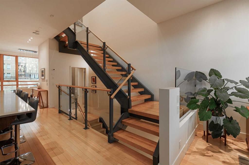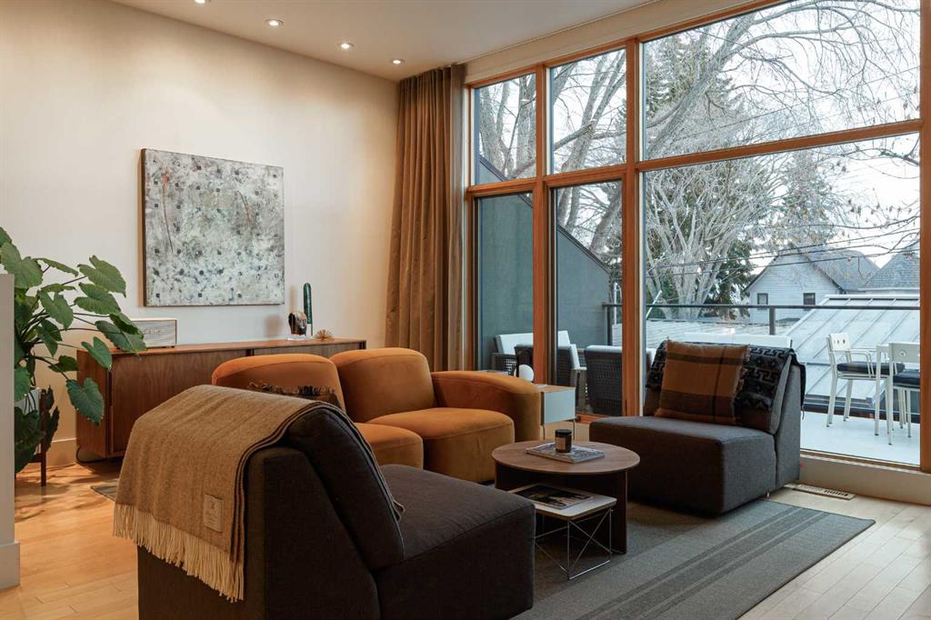 Welcome to an exceptional architectural collaboration by Gibbs Gage Architects and McIntyre Bills Interior Design, ideally located in the heart of vibrant Marda Loop and overlooking the historic King Edward School, now home to the inspiring cSPACE Arts Campus. This is inner-city urban living at its finest. Enjoy a truly walkable lifestyle—steps to Marda Loop’s best shops, restaurants, cafés, and bars, and within easy walking distance to the Garrison Curling Club, Flames Community Arenas, Glencoe Club, and Sandy Beach. Just minutes to downtown Calgary with quick access to Crowchild and Glenmore Trails. From the moment you arrive, the home impresses with striking curb appeal and evident pride of ownership throughout. Step inside to an open-concept main level accented by gleaming hardwood floors and refined contemporary finishes with over 2400 sq feet of finished living space and 10 foot ceilings. The dining area is perfectly positioned to take in unobstructed views of the iconic limestone King Edward School—an architectural backdrop few homes can offer. The chef’s kitchen is both beautiful and functional, featuring a large central island, sleek contemporary cabinetry, and stainless steel appliances, seamlessly flowing into a warm and inviting living room anchored by a natural gas fireplace. Step outside to your south-facing balcony, the perfect spot for summer dinners and sunset views. Upstairs, you’ll find three generously sized bedrooms, including a stunning primary retreat with a spa-inspired ensuite and large walk-in closet. Two additional bedrooms—one ideal as a home office—both enjoy majestic views of the historic school grounds. Descend the striking floating staircase to the fully finished walkout basement, an award-winning design filled with natural light from expansive showcase windows. This level offers in floor radiant heating; a spacious family room with a second natural gas fireplace, a large fourth bedroom, a full bathroom, and a dedicated workout room—perfect for modern living. Outside, enjoy warm summer evenings in your private backyard, complemented by a double detached garage. This is a rare opportunity to own a thoughtfully designed, architecturally significant home in one of Calgary’s most sought-after inner-city communities. Inner-city living at its absolute best. Call your favourite REALTOR® today to book your private viewing.