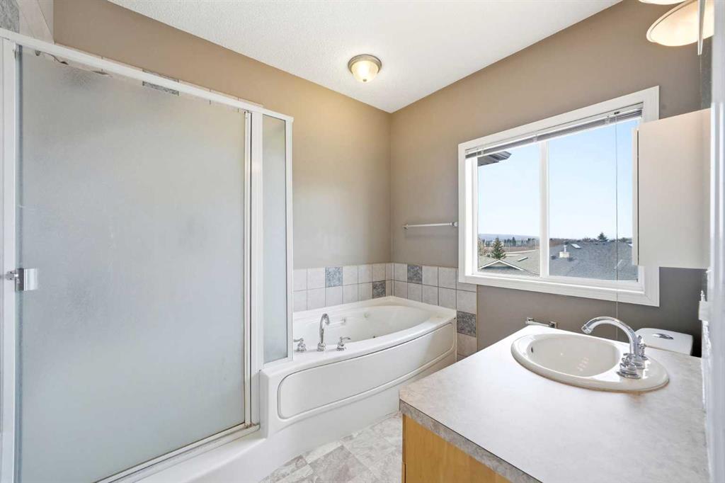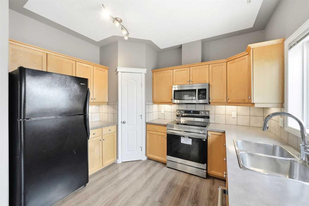 ***OPEN HOUSE: SATURDAY, APRIL 25 FROM 1 PM TO 3 PM AND SUNDAY, APRIL 26 FROM 2 PM TO 4 PM*** Welcome to this spacious and well-appointed 3-bedroom, 2.5-bathroom home offering a highly desirable, family-friendly layout, a fully finished walkout basement, attached double garage, and low-maintenance living. The bright and open main floor features a cozy fireplace, a functional kitchen complete with a brand new Samsung stainless steel range, and a sunny breakfast nook—perfect for everyday living and entertaining. Upstairs, you’ll find three generously sized bedrooms, providing comfortable space for the whole family. Start your mornings in the primary retreat, where you’ll enjoy beautiful Rocky Mountain views, a walk-in closet, and a 4-piece ensuite with a relaxing jetted tub. The fully finished walkout basement adds incredible versatility, featuring a dedicated laundry room with utility sink and a flexible living area ideal for a family room, home office, or gym. Step outside to the balcony equipped with a natural gas BBQ line—perfect for summer gatherings. Located in a prime, convenient area close to restaurants, shopping, Cineplex, schools, parks, and major routes, this home offers both comfort and accessibility. Move in today and enjoy immediate possession—just in time for summer