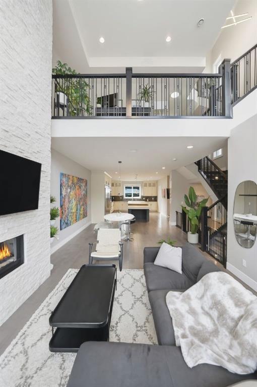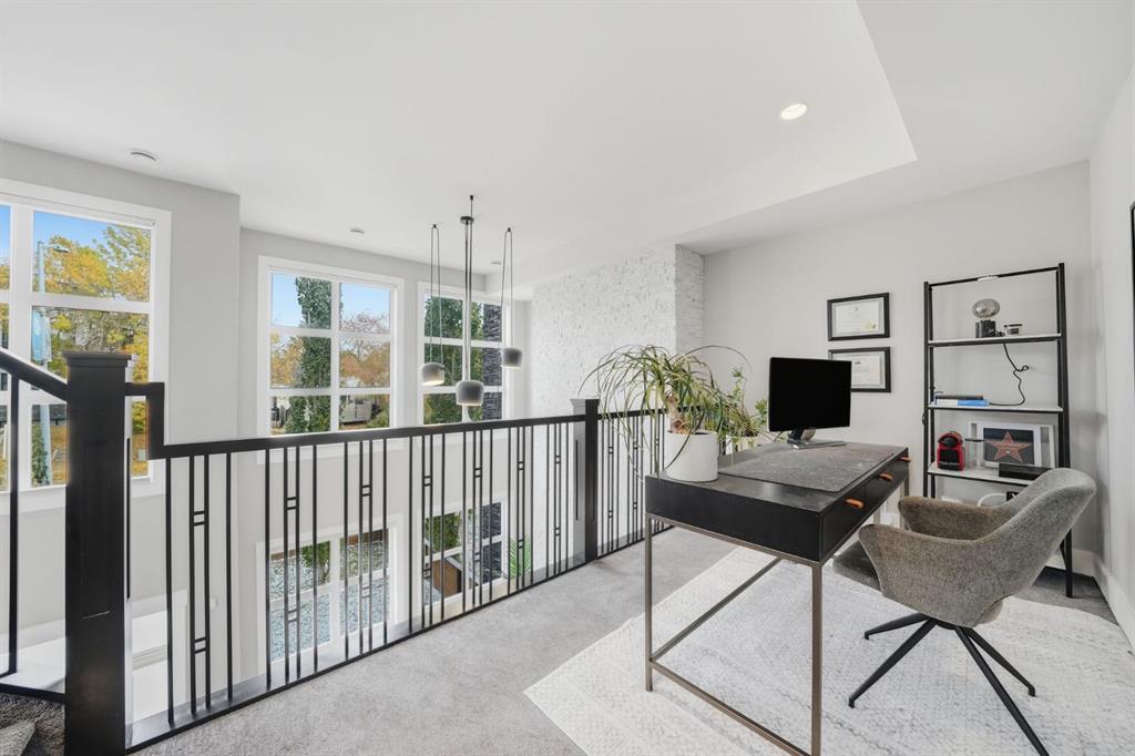 OPEN HOUSE SATURDAY, OCTOBER 18TH FROM 1-4 PM. Breathtaking 3+2 bedroom offering over 3,400 sq ft f developed living space in the heart of sought-after South Calgary! The main level presents hardwood floors, high ceilings & is drenched in natural light, showcasing the living room with soaring ceiling & spectacular 2 story feature fireplace. The casual dining area provides ample space to host family & friends. A chef-inspired kitchen is tastefully finished with huge island/eating bar, an abundance of storage space & stainless steel appliance package. A 2 piece powder room & mud room complete the main level. The second level hosts a bright loft area that overlooks the living room, 2 bedrooms (both with walk-in closets), a 5 piece bath & laundry room with sink & storage. The private & sumptuous primary retreat encompasses the third level & features an inviting fireplace, access to a private balcony, 2 walk-in closets & lavish 6 piece ensuite with dual vanities, a relaxing freestanding soaker tub & separate shower. Basement development includes a large recreation room complete with wet bar – perfect for game or movie night. Two bedrooms & a 3 piece bath are the finishing touches to the basement. Further features include central air conditioning & wiring for data & sound. Also enjoy the south back yard with large patio, gas BBQ outlet & access to the double detached garage. This home is conveniently located just steps to vibrant Marda Loop & close to River Park, excellent schools, shopping, public transit & just minutes to the downtown core.