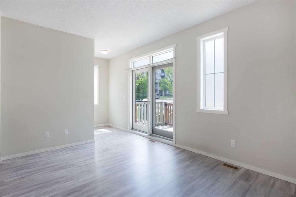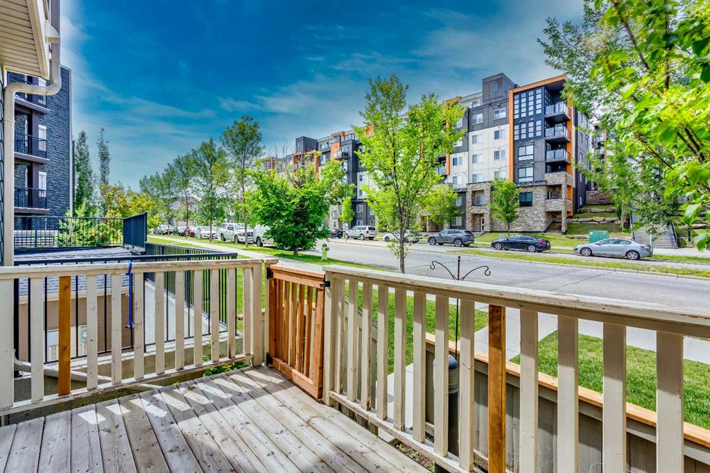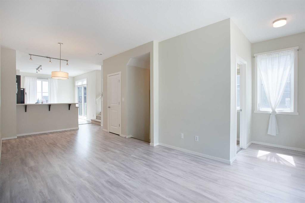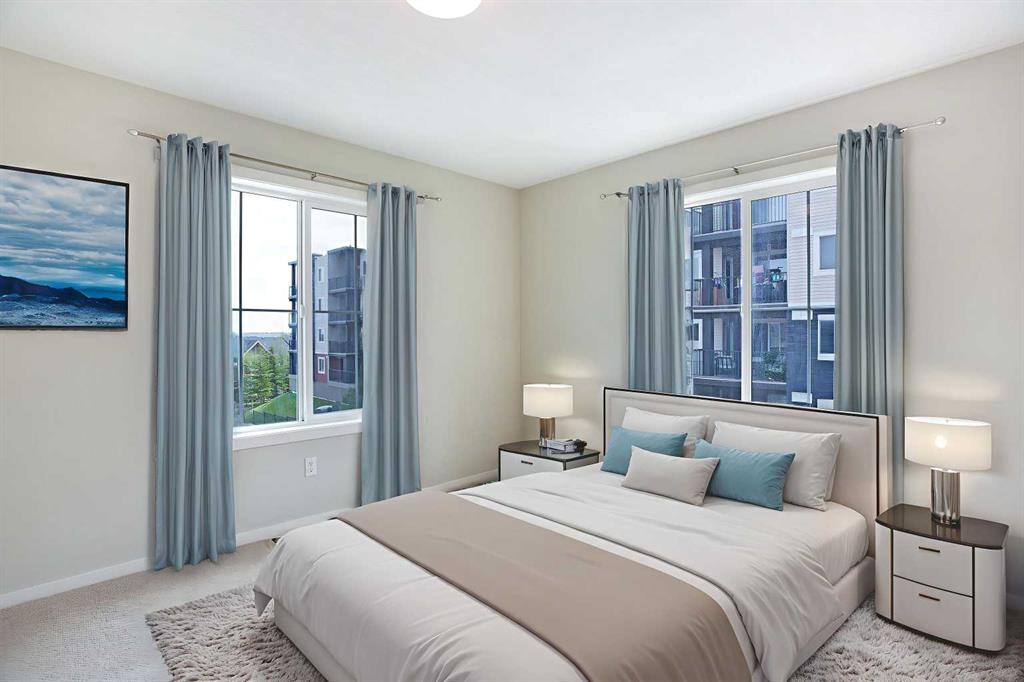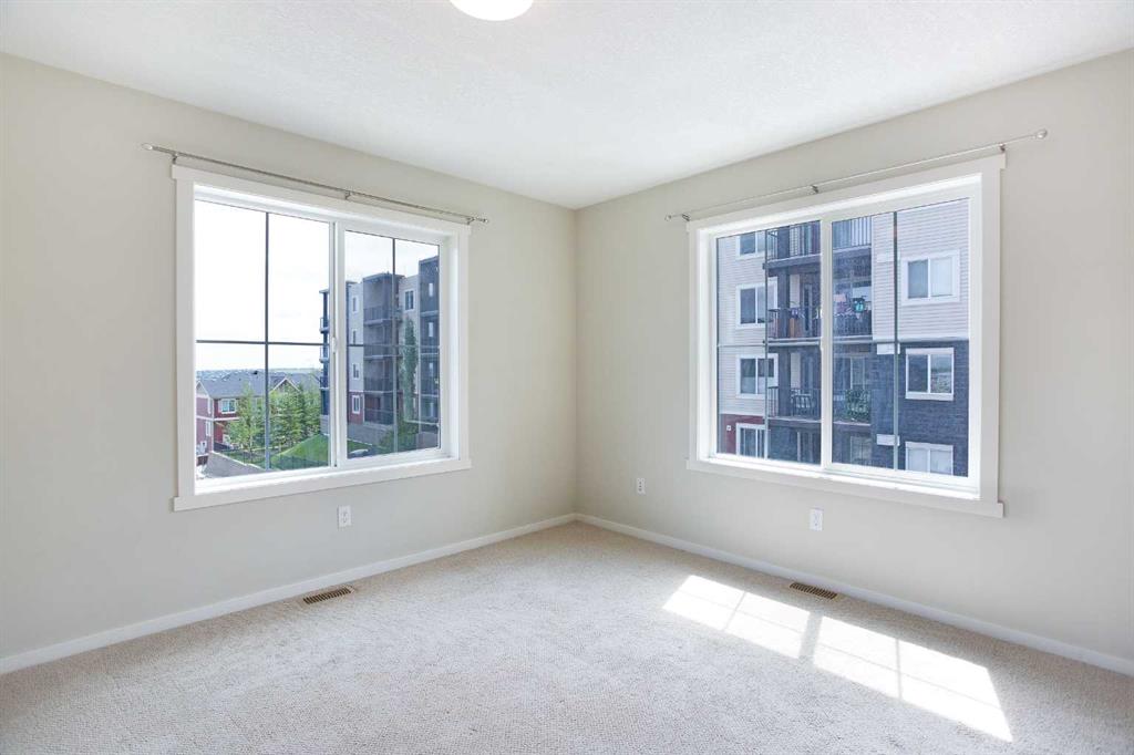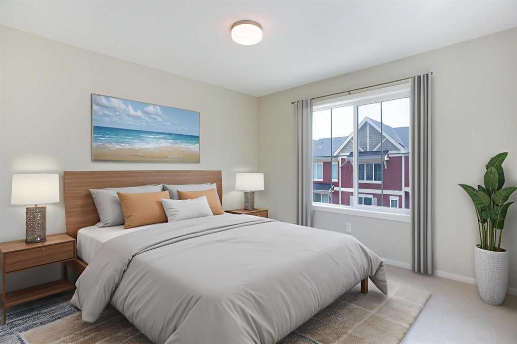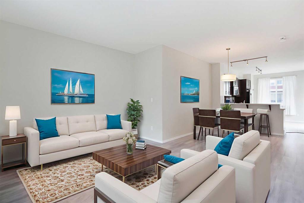 Welcome to this stylish and turnkey end-unit townhouse in the highly sought-after community of Kincora. Built by Homes by Avi Urban, this beautifully designed 3-bedroom home offers over 1,300 sq.ft. of living space with smart functionality, contemporary finishes, and abundant natural light throughout. The main level features 9-foot ceilings and a bright, open-concept layout ideal for modern living. The central kitchen is well-appointed with Whirlpool stainless steel appliances, rich wood cabinetry, a raised eating bar, and a corner pantry for extra storage. Adjacent to the kitchen, the dining area flows into a sunny living room that opens onto your private south-facing balcony—perfect for morning coffee or evening relaxing. A second balcony off the kitchen includes a gas line for BBQ, extending your summer entertaining space. A convenient powder room completes the main floor. Upstairs, you’ll find three spacious bedrooms including a primary retreat with a walk-in closet and private 3-piece ensuite. Two additional bedrooms share a full 4-piece bath, and the upper-level laundry means no more hauling clothes up and down stairs. Downstairs, enjoy direct access to your oversized tandem double garage with plenty of room for two vehicles, bikes, and seasonal storage. There’s also visitor parking right outside, and the beautifully landscaped central courtyard adds a tranquil, park-like feel to the complex. Additional features include durable laminate and carpet flooring, oversized windows, and low-maintenance condo living with fees that cover lawn care and snow removal. Enjoy quick access to Stoney Trail, Shaganappi Trail, Creekside Shopping Centre, parks, pathways, and more. Whether you're a first-time buyer, investor, or downsizer—this property is an ideal fit. Just move in and enjoy!