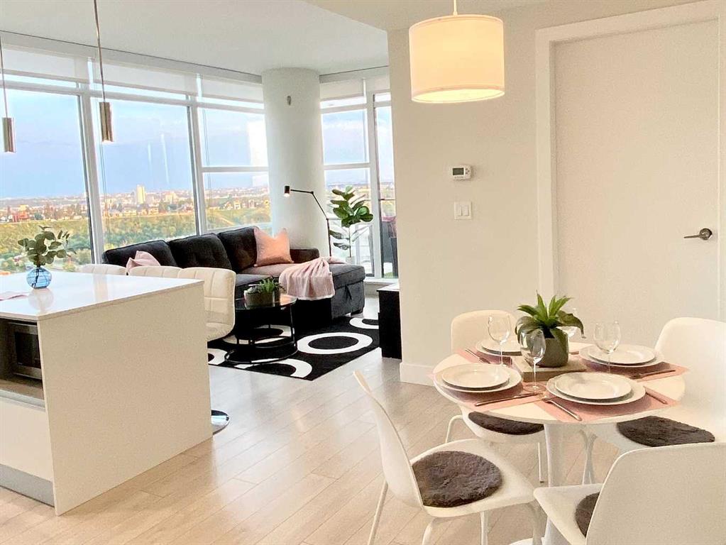 Discover urban luxury in this mint-condition 2-bedroom, 2-bathroom condo in The Guardian’s South Tower, perfectly nestled in Calgary’s vibrant Victoria Park/Beltline. Breathtaking city, river, or mountain views through floor-to-ceiling windows create an inspiring backdrop for young professionals, couples, or downsizers craving a stylish, low-maintenance lifestyle. Move-in ready with optional high-quality furniture included, this turnkey gem eliminates the hassle of setup. Enjoy a rare included parking stall, a modern kitchen with sleek finishes, and access to premium amenities like a fitness center, garden terrace with BBQs, and a social club for effortless entertaining. Steps from downtown, East Village, Stampede Park, and trendy 17th Avenue, you’re at the heart of Calgary’s cultural pulse. Investors, seize the rental potential in this high-demand area! Priced competitively in Calgary’s balanced 2025 market, this condo won’t last—book your private showing today and submit your offer before it’s gone!