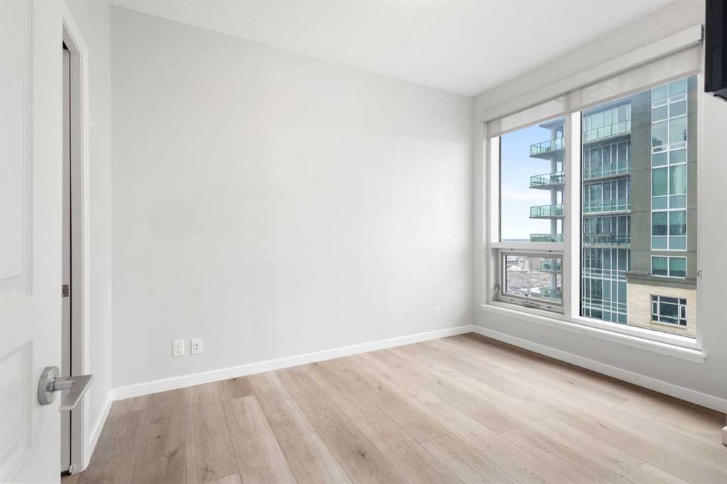 Perched on the 19th floor in Alura, this well-designed 2-bedroom, 2-bathroom unit offers a rare combination of functional layout, natural light, and true inner-city convenience. With 787 sqft of interior living space , the layout is thoughtfully arranged with the living area positioned between both bedrooms, creating ideal separation for privacy—perfect for roommates, guests, or rental flexibility. Floor-to-ceiling windows bring in abundant natural light while opening onto a private balcony with expansive city and mountain views. The kitchen is both practical and modern, featuring quartz countertops, full-height cabinetry, and stainless steel appliances, seamlessly connected to the main living space for everyday living and entertaining. The open-concept design enhances the overall sense of space and flow. The primary bedroom includes a walk-through closet and 4-piece ensuite, while the second bedroom is well-sized and conveniently located near a full 3-piece bath. In-suite laundry adds everyday convenience without compromising space. This unit also comes with heated titled underground parking and a separate storage locker, along with access to visitor parking—a key advantage for downtown living. Residents of Alura enjoy central air conditioning, a full fitness facility, concierge service, and security, all within a well-managed building. Located steps from downtown, 17th Ave, Stampede Park, LRT, restaurants, and daily amenities, this property offers strong appeal for both end-users and investors seeking long-term livability with rental potential.