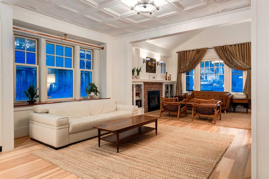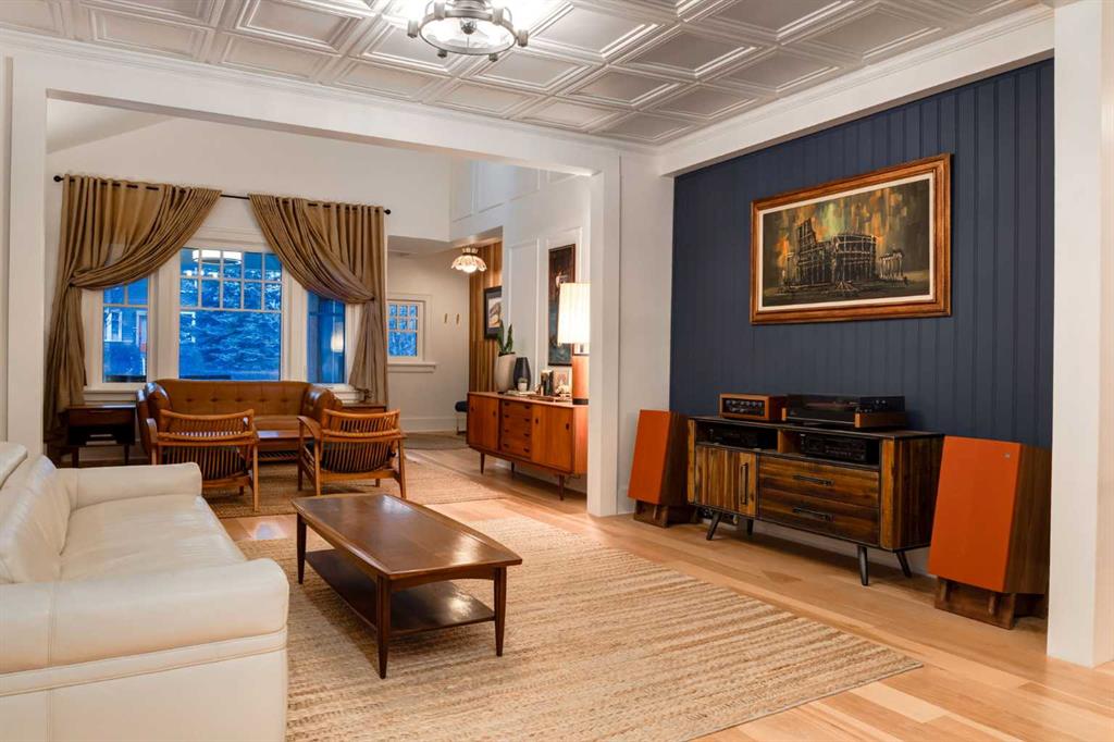 OPEN HOUSE SATURDAY - 11AM to 3PM. Set in Upper Mount Royal, this beautifully renewed Craftsman home offers an exceptional blend of architectural charm, bespoke finishes, and modern, high-performance upgrades. Surrounded by mature trees and framed by artful landscaping, the property rests on a quiet, private street just a short walk from 17th Avenue, yet feels worlds away in its tranquility. A covered front porch welcomes you into a residence defined by warmth and craftsmanship. The front gardens are meticulously designed with rock wall detailing, perennial plantings, and carefully placed rock borders with new sod installed in 2023. Established species anchor the outdoor spaces with year-round texture and colour, all maintained by a five-zone sprinkler system. At the rear of the home, double French doors open onto an expansive wraparound deck - a series of outdoor living and dining spaces that celebrate the home’s connection to nature. Inside, the residence unfolds with a curated blend of original detail and modern sophistication. Engineered hardwood floors span the main and upper levels, while custom wallpaper, stained glass sconces, coffered ceilings, vaulted ceilings—including one with a skylight—and built-in shelving create an atmosphere of timeless charm. The original brick chimney remains a focal point, preserving the home’s architectural story. The kitchen is both beautifully crafted and superbly equipped. Custom wood and beadboard cabinetry, Caesarstone countertops, and a brick backsplash are paired with a suite of premium appliances and a custom hood venting system. Details such as the copper sink, overhead potholder, and a dedicated coffee and scotch bar elevate both daily living and entertaining. The home’s bathrooms carry the same blend of history and refinement. The main bath features a classic clawfoot tub, while the primary ensuite is a true retreat, complete with a custom antique double vanity topped with hardwood counters, an oversized glass shower with gold-finished rain and hand-held fixtures, heated floors, and the original butler’s door connecting directly to the walk-in closet. The lower level offers extensive storage and a hidden room that lends itself beautifully to your own private “speakeasy”, music room, cigar and scotch lounge, or personal retreat. A new asphalt roof was installed in 2023, and a 21-panel, 8.91-kilowatt solar array added in 2025. Nearly all windows and the rear doors have been upgraded to Lux units, complemented by JELD-WEN windows in select spaces. The electrical service was upgraded to 200 amps in 2023, the furnace control board was replaced in 2024, and on-demand hot water is installed. The heated, oversized double attached garage offers exceptional utility with direct access to the home, easily accommodating two vehicles with extra space for other “toys”. This Upper Mount Royal residence embodies luxury in its truest form—not through excess, but through craftsmanship, character, and an enduring connection to place.