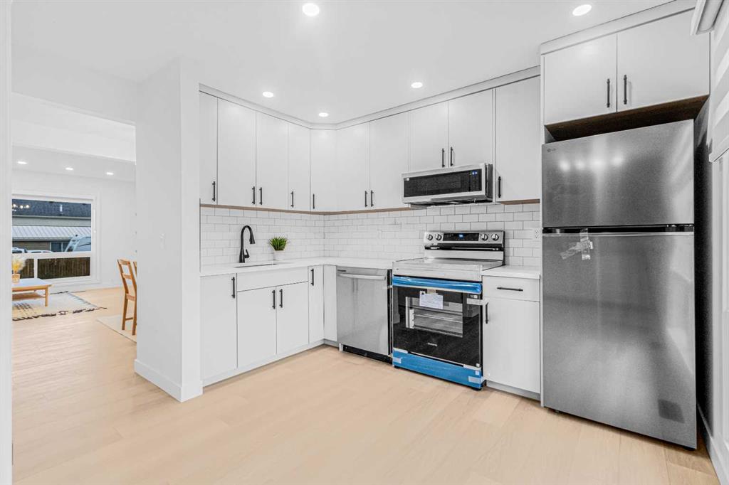PRICE TO SELL | DETAILED RENOVATION LIKE A SHOWHOME | LOT OF CUSTOM WORK | All New LVP Flooring | Custom Electric Fireplace | Brand New Kitchen Matte Cabinet | Brand New Kitchen Appliance from Costco | All Quarzt Counter Top through the house | Custom Standing Shower | New Hardware and Doors | Brand New Deck | Brand New 3 Windows in all 3 Bedrooms | Newer Window Living Room | Newer Furnace | Brand New Zebra Blind in Main Floor. Welcome to #2, 112 Erin Grove Close SE, a 3 bedroom 1.5 bath two-storey townhome nestled in the heart of Calgary’s Erin Woods community. This home has been fully renovated from top to bottom with premium materials, exceptional craftmanship, functional and style. Luxury vinyl plank floor throughout the house, brand new bedroom windows, brand new kitchen cabinets brand new appliances and bathroom amenities, new deck. Back lane is accessible with one assigned parking slot, and lots of parking right in front of the house. On entering the main foyer, you will find a bright living room, with large windows and a stylish fireplace providing a cozy and modern feel. Kitchen has been fully renovated with quartz counter top, with a large windows overlooking the deck and backyard. Upstairs boasts 3 good sized bedrooms and a full bathroom with modern lights and standing shower. The basement is spacious and not finished, awaiting your personal touch. Located in the tranquil Erin Woods neighborhood, this home is just minutes from schools, parks, shopping, and offers easy access to Deerfoot and Stoney Trail, making commuting a breeze. The area is known for its quiet streets and abundance of green spaces—ideal for families and outdoor enthusiasts. Affordable and move-in ready, this house is a gem and can't be missed. Book your showing today before it's gone.