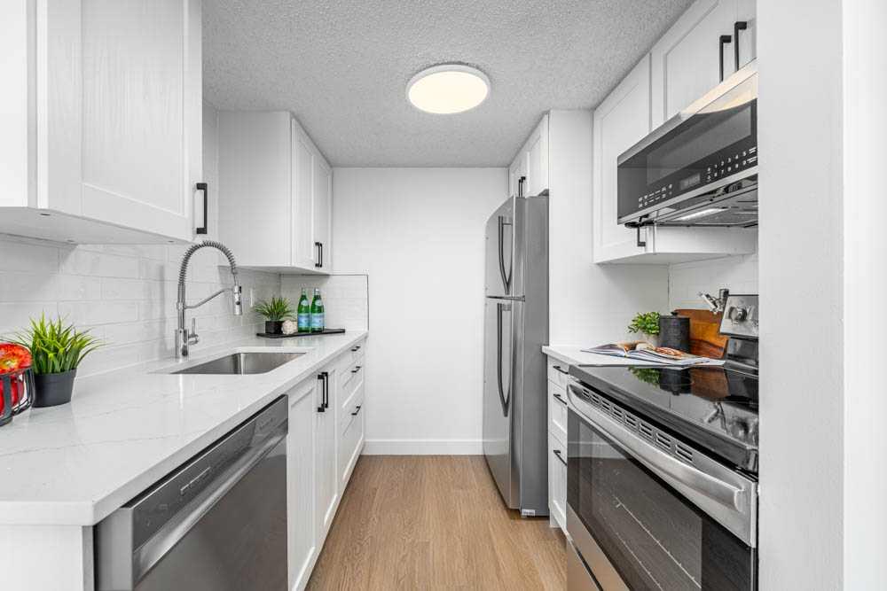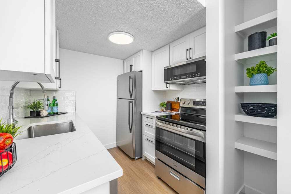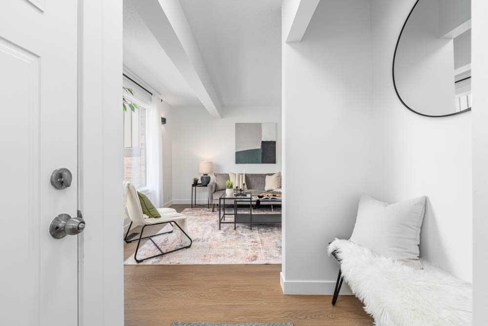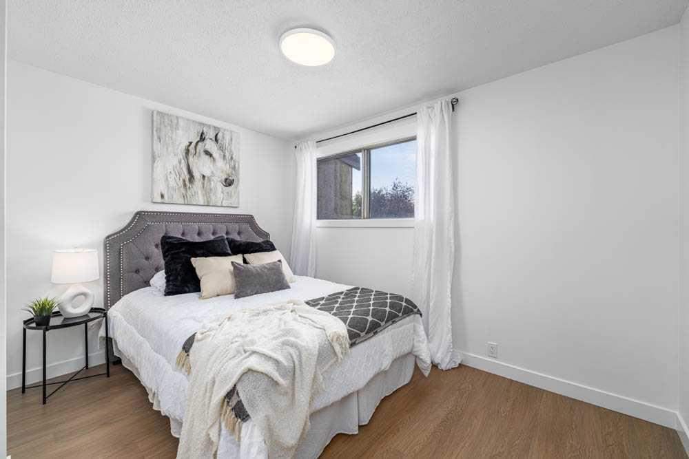 Step into this bright and cheerful 2-bedroom, 1 bathroom townhouse, freshly renovated and ready to impress! Nestled in a quiet, well-maintained complex in northwest Calgary, this gem is perfectly located near schools, parks, a rec centre, and great shopping. Inside, you’ll love the modern updates—from the sleek new kitchen with all-new appliances to the stylish vinyl flooring and fresh paint throughout. The primary suite is a generous size - big enough for a king bed - and has its own private balcony! The upper floor also has a second good size bedroom and a full bathroom. There’s even a brand-new washer and dryer for your convenience. Enjoy sunny days in your private, fenced yard, and never worry about parking with your own stall right out front. This home blends comfort, style, and location—truly the best of all worlds!