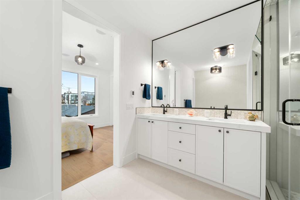 *** OPEN HOUSE: Sun. February 15, 12-2PM *** Located in the highly sought after community of Altadore with exceptional access to parks, shops, coffee spots, dining, local boutiques, and more, 2006 41 Ave SW is a striking modern duplex that perfectly balances luxury, style, and functionality. This home welcomes you with a charming front porch accented by brick pony walls, leading into a bright and open concept main floor designed for both everyday living and entertaining. The spacious dining area flows seamlessly into the gourmet kitchen, featuring an oversized island, sleek quartz countertops, premium appliances, and custom ceiling height cabinetry. The cozy living room is anchored by a gas fireplace with built in shelving, while patio doors open to a private back deck, ideal for effortless indoor and outdoor living. A functional mudroom and convenient powder room complete the main level. Upstairs, the second-floor features two spacious secondary bedrooms. The first offering a gorgeous spa inspired ensuite with a walk-in shower, deep soaker tub, dual vanities, in floor heating, and a spacious walk-in closet. The second bedroom includes its own walk in closet and private bathroom access, while a charming reading nook or office area adds flexibility to the upper floor. A dedicated laundry room completes this level. The third level is dedicated to the primary master suite, creating a private top floor retreat. This luxurious space features dual walk-in closets and a spa inspired ensuite complete with a steam shower, deep soaker tub, dual vanities, heated floors, and in closet built in custom wood wardrobes, offering exceptional comfort and versatility. A bright and open bonus area with a wet bar and access to a private balcony showcasing impressive views further enhances this level, making it perfect for both relaxing and entertaining. The fully finished basement expands the living space with a large recreation room complete with a built in media center and wet bar, an office or gym area, ample storage, a full bathroom, and an additional bedroom with a walk-in closet, ideal for guests or family. The basement also includes in floor heating rough in, offering future potential for added comfort. Additional highlights include AC rough in for future installation and a double detached garage providing secure parking and extra storage. This exceptional property delivers modern luxury, thoughtful design, and everyday practicality in one of Calgary’s most desirable inner-city neighborhoods.