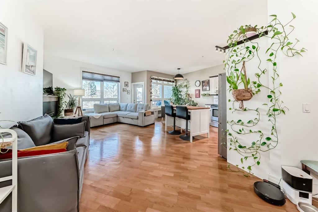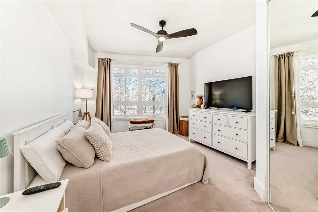 Welcome to Kensington Mews I, where refined urban living meets one of Calgary’s most dynamic and walkable communities. Ideally located on sought-after 14 Street NW, this beautifully maintained second-floor condo offers 909 sq ft with two bedrooms and one updated bathroom (2026). Floor-to-ceiling west-facing windows flood the open-concept kitchen, dining, and living space with natural light, Stainless Steel appliances, new dishwasher (2025) while the central island and cozy gas fireplace create a warm, inviting atmosphere. Step onto the sunny west-facing balcony with gas hookup to enjoy evening sunsets and effortless summer entertaining. The spacious and bright primary bedroom easily accommodates a king-sized bed, while the versatile second bedroom is ideal for a nursery, office, or creative studio. An oversized front storage room with pantry potential, full-sized washer (2024) and dryer, titled heated underground parking, and a separate assigned storage locker provide exceptional everyday convenience. Living in Kensington means embracing a truly connected lifestyle—morning coffee at one of the many independent cafés, grocery shopping just steps from your door (many with underground parking), and quick access to downtown whether you choose to walk, bike, or commute with ease. Spend summers floating down the Bow River, fishing along the nearby riverbanks, exploring the Bow River pathway system, or enjoying the neighbourhood’s vibrant festivals and seasonal events. Surrounded by boutique shopping, acclaimed restaurants, parks, and direct access to Memorial Drive, 14 Street NW, and the downtown core, this residence offers the perfect balance of private retreat and urban energy in one of Calgary’s most sought-after locations...