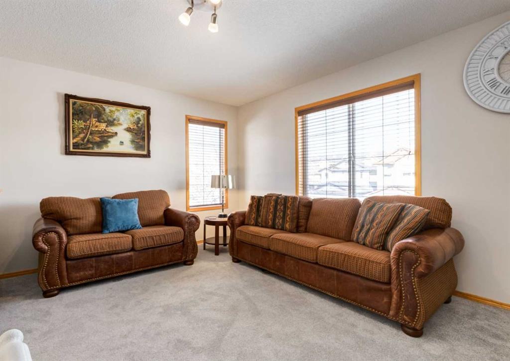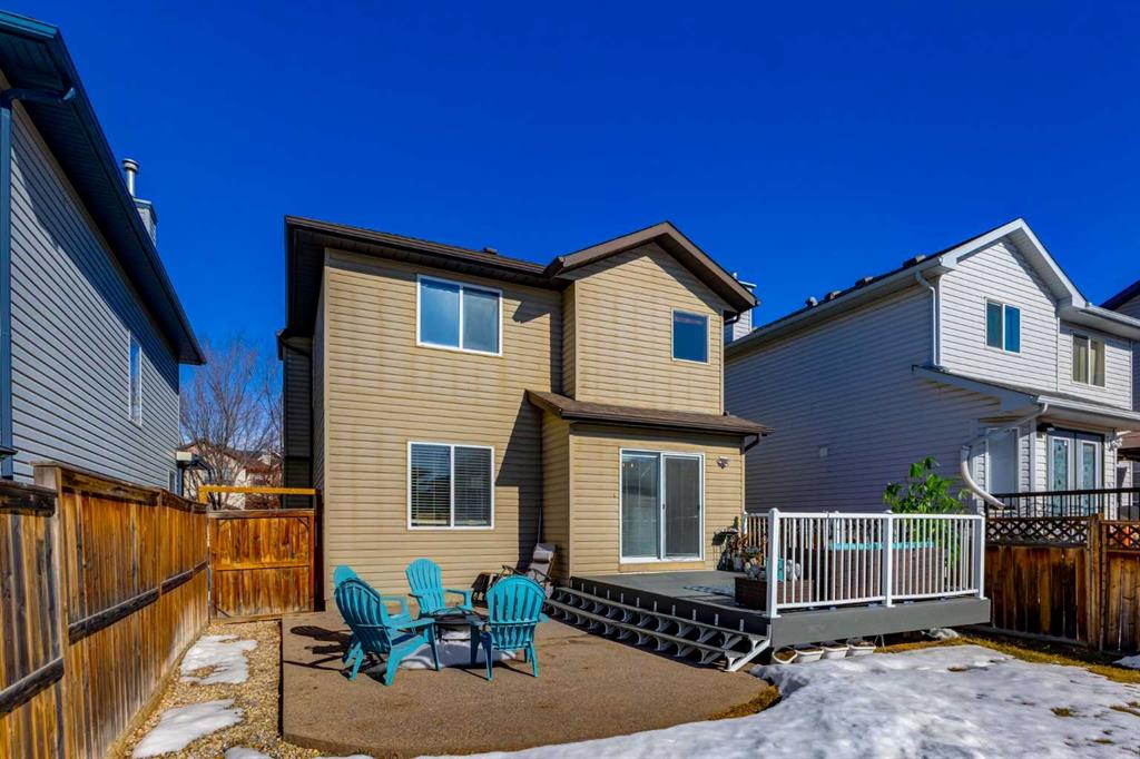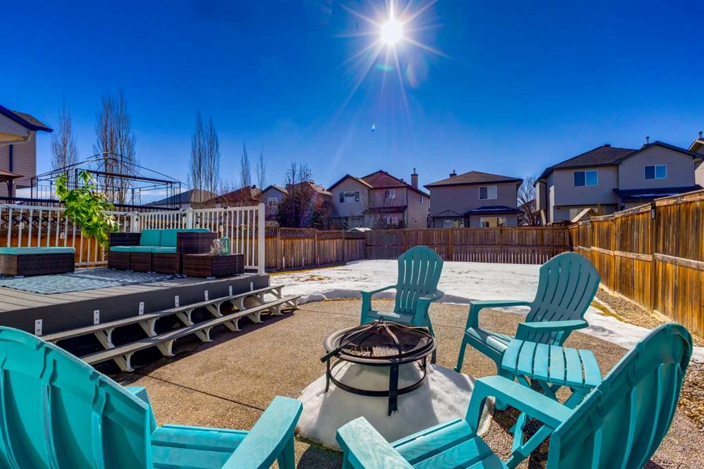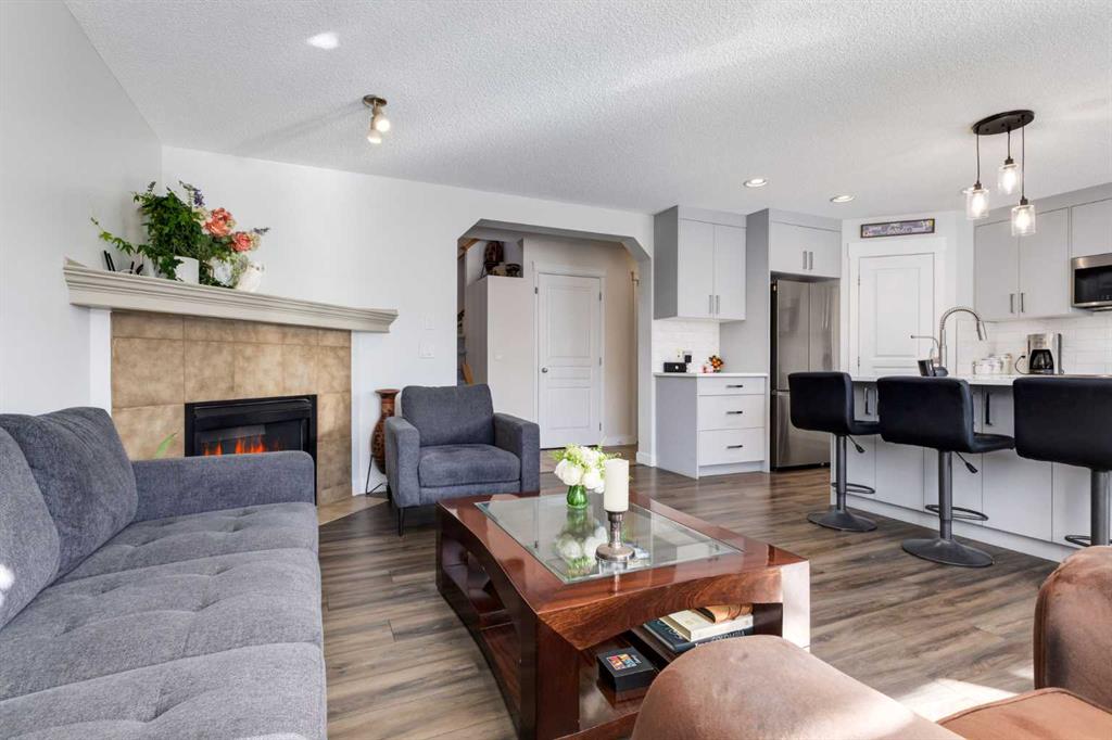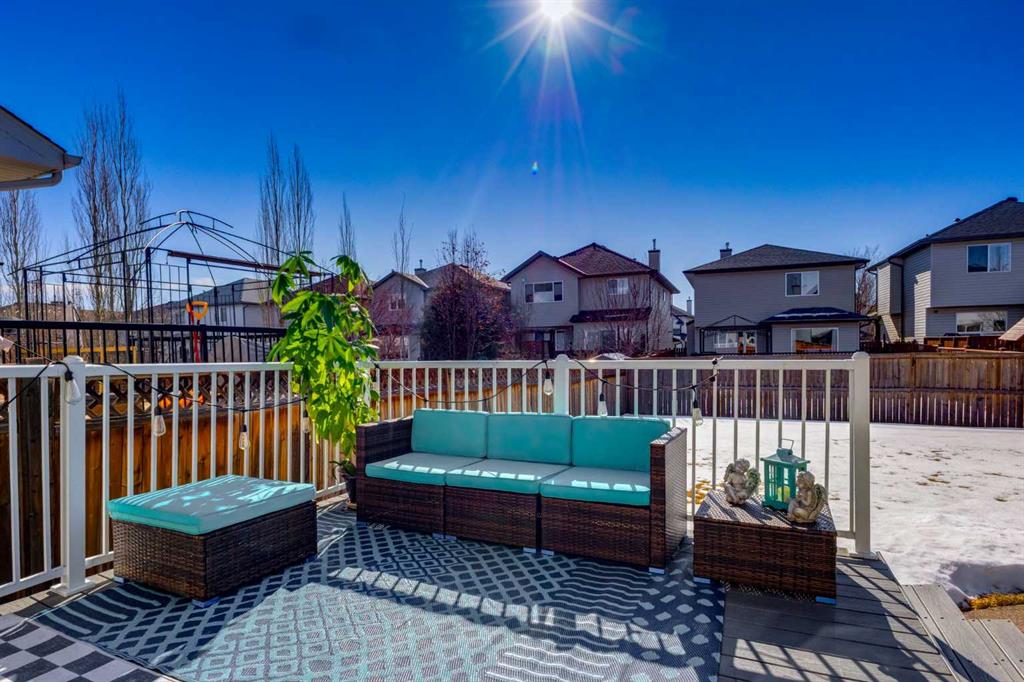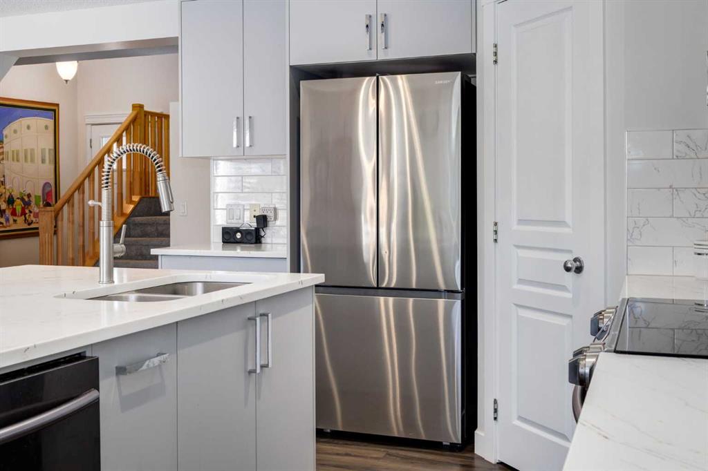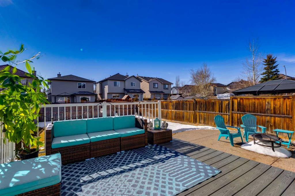 Beautifully updated and perfectly positioned to capture south-facing sunshine, this inviting family home in Tuscany blends modern upgrades with thoughtful design and comfortable living spaces. Step inside to discover a bright main floor where new luxury vinyl plank flooring flows throughout the primary living areas. The welcoming living room is anchored by a cozy corner fireplace and large south-facing windows that fill the space with natural light. The fully renovated kitchen is the heart of the home, featuring soft grey cabinetry accented with sleek polished chrome hardware, elegant quartz countertops, and a spacious island ideal for gathering. Glass-front upper cabinets add a refined design touch, while a large corner pantry provides generous storage. A full suite of stainless steel appliances completes the space. The adjacent dining area opens through double sliding patio doors open to an oversized composite deck, creating seamless indoor–outdoor living and a sunny backyard perfect for entertaining. A practical mudroom with main floor laundry connects directly to the double attached garage, while a tucked-away two-piece powder room adds convenience for guests. Upstairs, new plush carpeting leads to a spacious bonus room with two large windows—ideal as a family media space or children’s play area. The primary suite offers a relaxing retreat with a beautifully updated ensuite featuring a soaker tub, glass & tile shower, and quartz vanity. A large walk-in closet is accessed from the ensuite. Two additional bedrooms and a renovated four-piece bathroom complete the upper level. The fully developed lower level adds flexibility with a large recreation room, an additional bedroom or home office, and a three-piece bathroom. Located near the Tuscany Club, scenic pathways, excellent schools, and transit at Tuscany LRT Station, the home also offers quick access to the Calgary Farmers' Market West, WinSport Canada Olympic Park, and Stoney Trail. Extras: New Roof 2021 | A/C 2023 | New Fridge 2026 | New Hot Water Tank 2024 New LVP 2024 | New Carpet Upper Floor 2025 | New Kitchen 2024 } New Bathrooms 2024 | New Microwave 2024 Bright, beautifully renovated, and move-in ready—this is modern Tuscany living at its best.