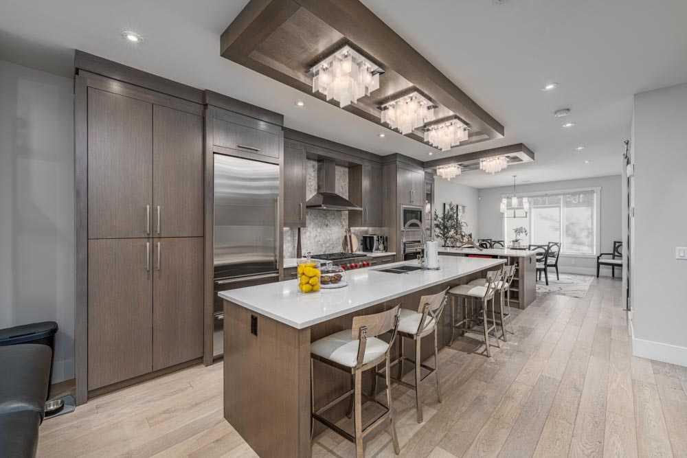 Welcome to West Hillhurst, one of Calgary’s most coveted inner-city neighborhoods. Tree-lined streets, river-path access, minutes to downtown, and a real sense of community you won’t find everywhere. Right here on 1 Avenue NW… is a home that takes craftsmanship, comfort, and design to another level. This isn’t just another modern infill. This is a timeless, custom-built residence where every inch, over 3,200 square feet has been meticulously designed and finished by hand. It blends modern elegance with true artisan detail… the kind you rarely see anymore. Step inside and you’ll immediately feel the difference. Champagne oak hardwood floors, flat 9-foot ceilings, skylights, and an open-riser staircase flood the home with light and warmth - complemented by ceiling speakers with a 3-zone Sonos system. You’ll notice solid doors, exceptional millwork, and custom built-ins that make organization effortless. At the heart of the home, the gourmet kitchen is a showstopper. Two expansive quartz islands, professional SS appliances including a 6-burner gas range and white-oak cabinetry with custom stain and under-cabinet lighting. You’ll love the private den, framed by a handcrafted barn door, ideal for working from home and the formal dining area, with its picture window that makes every meal feel special. The living room feels open yet cozy, anchored by custom shelving and 8-foot sliding glass doors that lead to a spacious rear patio featuring a $10k glass-top pergola, the ultimate space for entertaining or relaxing in the summer evenings. Upstairs, the primary suite is your private retreat. A beautiful dressing area featuring custom built-in his-and-hers closets. The ensuite rivals a luxury hotel: heated floors, dual vessel sinks, a curbless steam shower with body sprays and rain shower, and a soaker tub set against a tiled feature wall under a skylight. It’s the kind of bathroom that makes you look forward to mornings or never leaving at all. Two additional large bedrooms, sharing a main bath with dual sinks and a pocket door for multi-use convenience. Even the laundry room is designed with purpose that’s functional, bright, and perfectly placed. Downstairs, the lower level continues to impress. An expansive media room with wall-to-wall custom built-ins, surround sound, and a wet bar finished with black granite and shelving. There’s also a flex room with cork flooring, a spacious guest bedroom, and a 4-piece bath. Outside, enjoy a private landscaped yard that’s peaceful and low-maintenance. Recent upgrades include pantry pull-outs, new designer lighting, a filtered water faucet, privacy fencing, flower beds and rock features. This is outdoor living done right. You’re minutes from the Bow River Pathway, Kensington’s cafés, Foothills Hospital, and Calgary’s top schools. Homes of this caliber in West Hillhurst rarely come up. Built to far exceed today’s new construction, this is where timeless craftsmanship meets modern living.