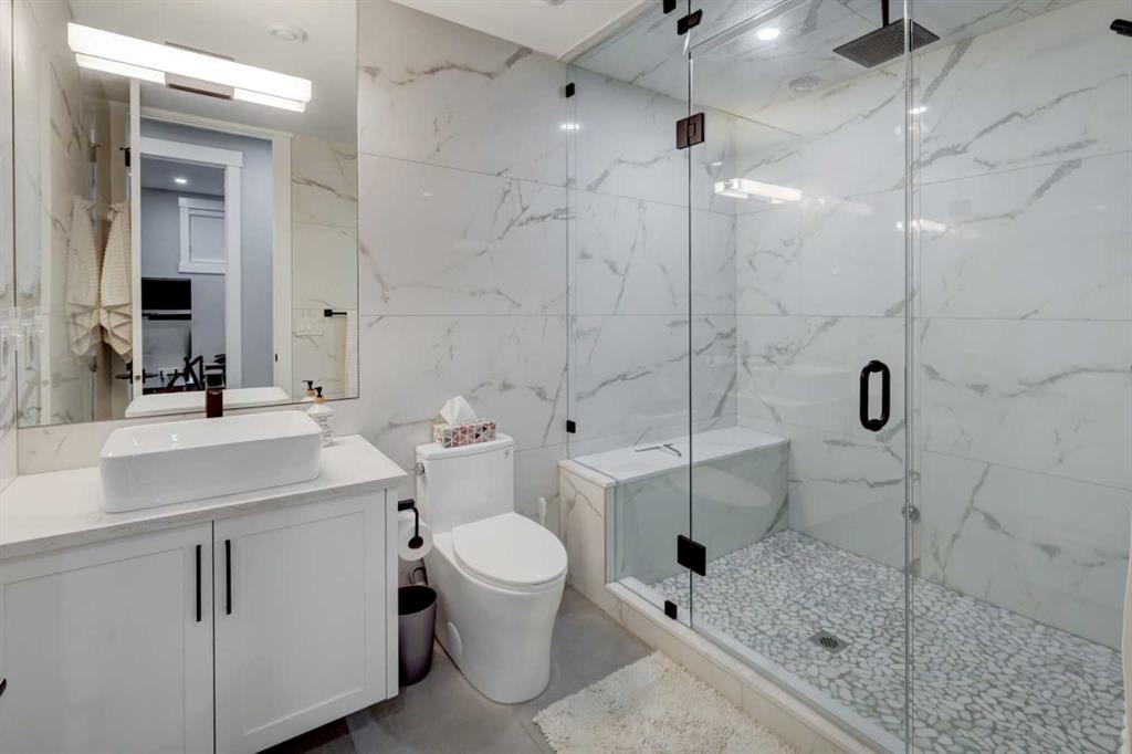 Stunning custom-built executive home with over 3500 Square feet of developed living space including FOUR bedrooms, FOUR full baths, a professionally developed basement, and heated TRIPLE-car garage, ideally located across from a park in Killarney. Stylish exterior with custom stone accents, gemstone lighting and inviting front patio. Open-concept design with neutral tones, 9’ & 10’ ceilings, wide-plank hardwood flooring, custom mouldings, barn doors, and Hunter Douglas blinds throughout. Chef-inspired kitchen with huge pantry features a six-burner gas range, professional stainless appliances, waterfall countertops, ample white cabinetry, and designer lighting. Spacious living room with gas fireplace and tray ceiling opens to a large deck, saltwater hot tub, and fully fenced yard. Show-stopping foyer with custom locker storage and open-riser staircase with glass railings, plus main-floor powder room and mudroom. Primary retreat offers vaulted ceilings, luxurious 5-piece ensuite with heated floors, floating double vanity, soaker tub, walk-in closet, and private outdoor seating area. Two additional upper bedrooms each include ensuite baths, plus upper-floor laundry. Entertainer’s basement features wet bar, fourth bedroom, fourth bath with heated floors throughout, wine cellar, gym, and ample storage. Other features include reverse osmosis water filtration, water softener, radon mitigation and Professionally landscaped low-maintenance yard with irrigation & artificial turf. This is the perfect family home in a great location just minutes to downtown, close to shops and all amenities including schools & parks.