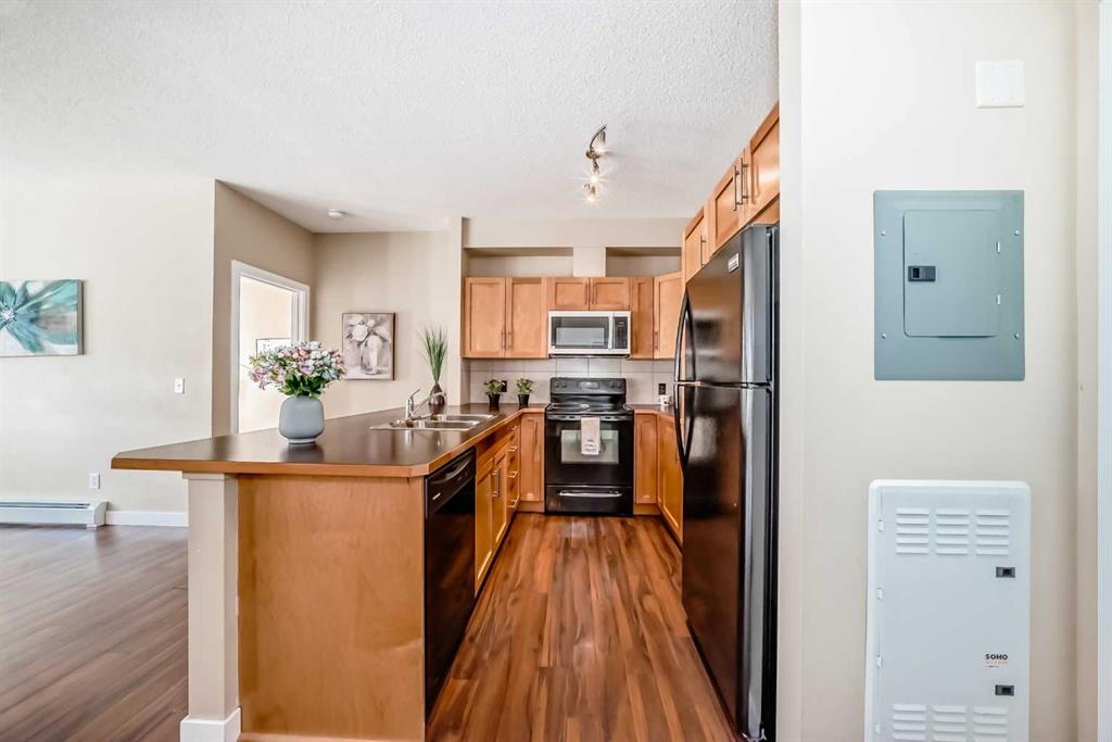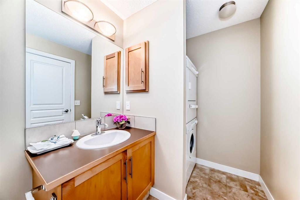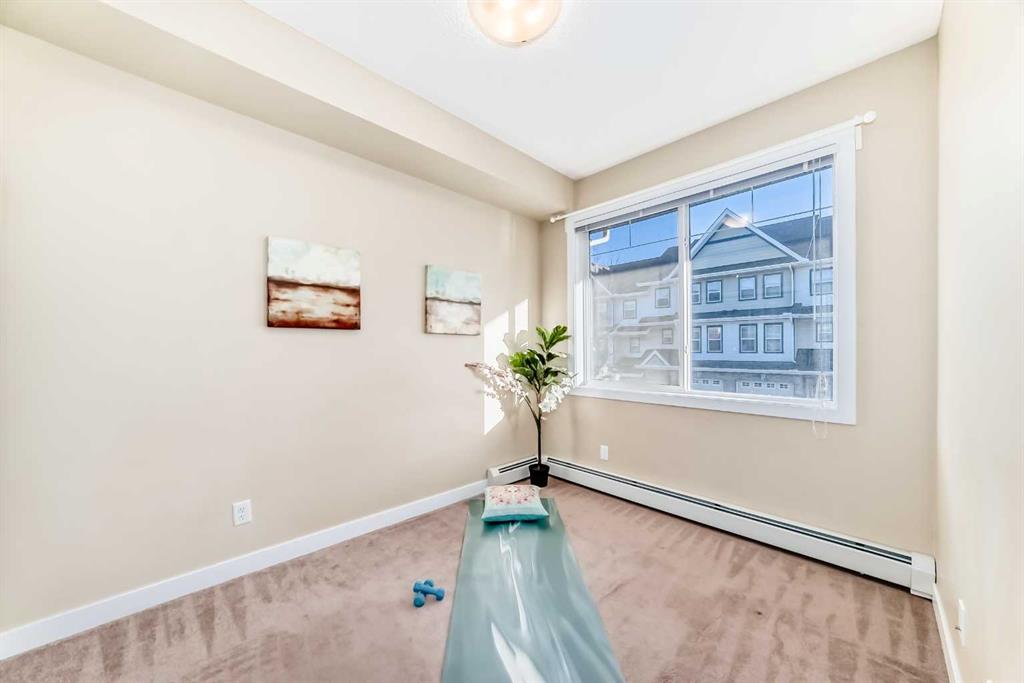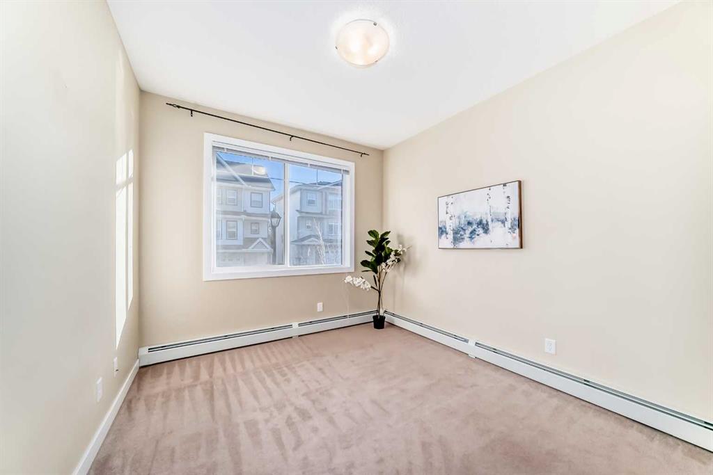 Excellent opportunity for comfortable living or investment. This well-maintained 2-bedroom, 2-bathroom corner unit is located in a quiet, modern building in the highly desirable Panorama Hills community. It includes a titled heated underground parking stall with an adjacent storage locker, offering both convenience and value. The bright open-concept living, dining, and kitchen area features 9-foot ceilings, creating a spacious and welcoming atmosphere. The kitchen is equipped with a large breakfast-bar island, ample cabinetry, and generous counter space—perfect for both everyday living and entertaining. The east-facing balcony provides abundant natural light and an ideal spot to enjoy your morning coffee or BBQ. The primary bedroom features a 4-piece ensuite and a rare walk-in closet with a side window, adding extra light and comfort. The second bedroom is generously sized and conveniently located next to another 4-piece bathroom, along with in-suite laundry for added practicality.Enjoy a prime location within walking distance to elementary and junior high schools, scenic ponds, and walking trails. Close to shopping centres, banks, restaurants, and playgrounds, with easy access to Stoney Trail, the airport, and the mountains.