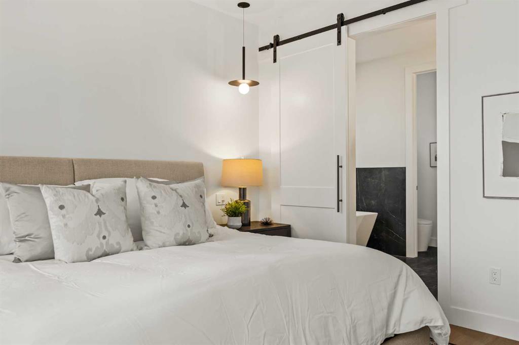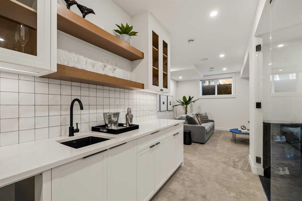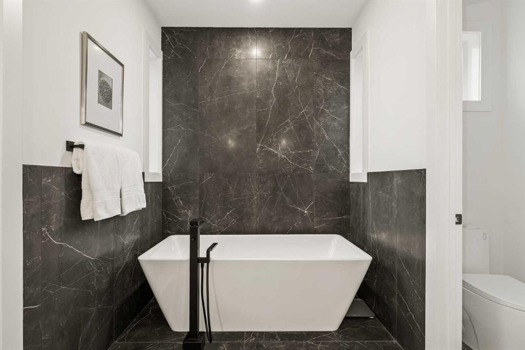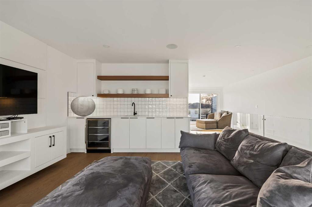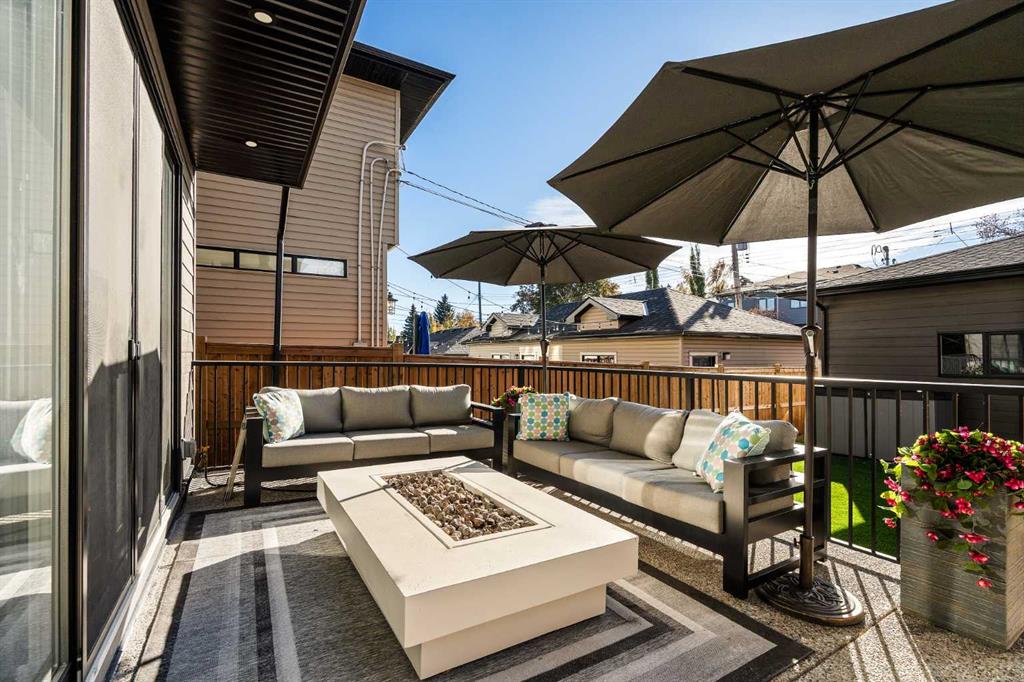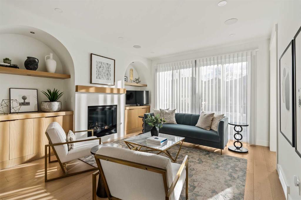 Stunning luxury 3-storey semi-detached residence offering 4 bedrooms, 4.5 bathrooms, a private south-facing backyard, fully air conditioned & ideally located in the heart of highly sought-after Altadore. Showcasing exceptional curb appeal with a gorgeous front elevation, this modern home is filled with natural light from expansive windows & features, thoughtful design & high-end upgrades throughout. The inviting front entry is both stylish & functional, complete with a built-in bench, coat hooks, & smart shoe storage. A front dining room sets the stage for elegant entertaining, while the heart of the home is the extensively upgraded central kitchen, anchored by a large waterfall island. Highlights include full-height cabinetry, deep lower drawers, soft-close hardware, a built-in pantry, & custom hood fan. Premium JennAir stainless steel appliances include a French-door refrigerator, gas range, built-in microwave, garburator & dishwasher. Across from the island, additional built-in cabinetry & counter space feature a beverage cooler. The rear living room is warm & refined, centred around a gas fireplace with recessed built-ins & custom millwork. Ten-foot-wide sliding patio doors open onto a south-facing exposed aggregate deck, seamlessly blending indoor & outdoor living. A spacious rear mudroom offers a closet, bench, & coat hooks, along with a private powder room featuring a vessel sink & sleek linear mirror. The second level includes the primary retreat featuring a generous bedroom & a spa-inspired 5-piece ensuite with a freestanding soaker tub surrounded by floor-to-ceiling tile, heated floors, a custom walk-in glass steam shower with rainfall shower head & built-in bench, dual vanity, & a walk-in closet with custom organizers, drawers, and a full-height mirror. Two additional bedrooms, complemented by a beautiful 4-piece bathroom & a thoughtfully designed laundry room with abundant cabinetry, counter space, & sink. The third level offers incredible flexibility with a bright loft-style bonus room featuring a built-in media centre & wet bar with beverage cooler, a separate home office, a full four-piece bathroom, & access to a private south-facing balcony. This level can also easily function as a studio-style 5th bedroom. The fully developed lower level is equally impressive, featuring a family room with wet bar & custom cabinetry, a 10-foot-wide glass-enclosed home gym with rubber flooring, a 4th bedroom, & a 3-piece bathroom. This level is roughed-in for in-floor heating. Built-in speakers are installed throughout the home & centrally wired to the mechanical room, & the property is also roughed-in for a central vacuum system. Outside, the backyard has been upgraded with turf for low-maintenance living, while the deck offers the perfect space for outdoor furniture. Altadore remains one of Calgary’s most desirable inner-city communities, offering quick access to Glenmore Athletic Park, Marda Loop, River Park off-leash, Sandy Beach, schools and more!