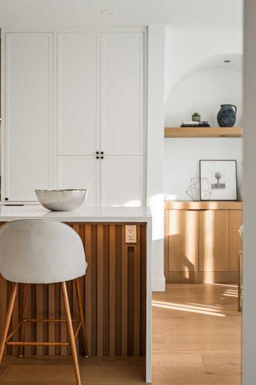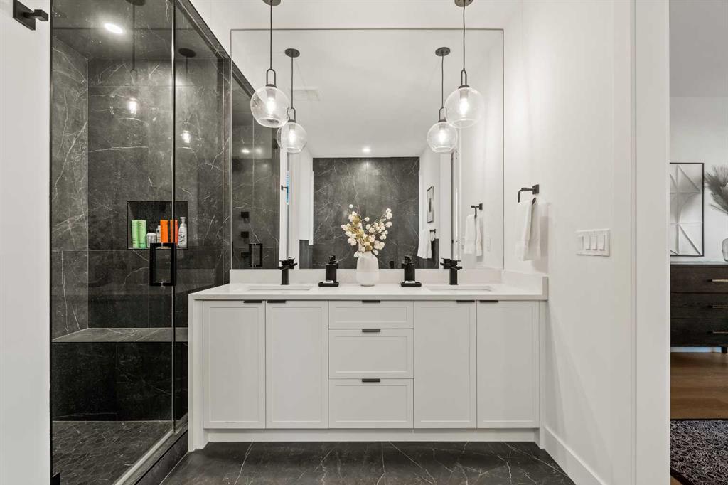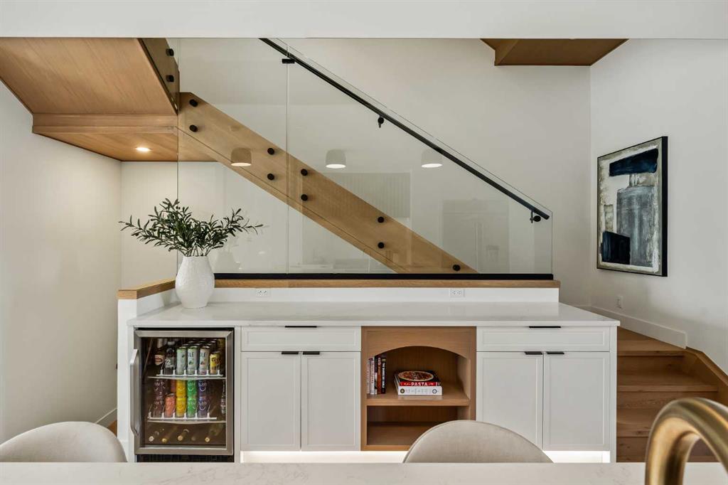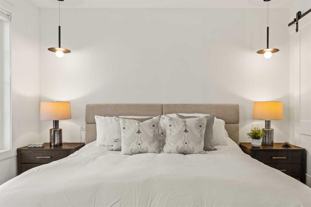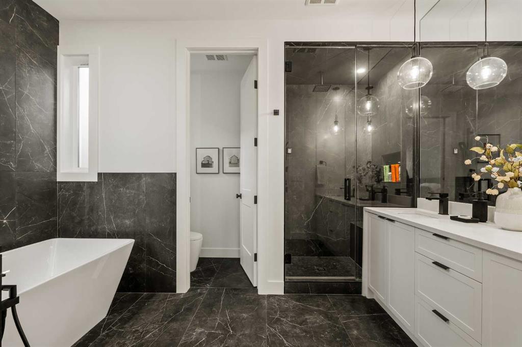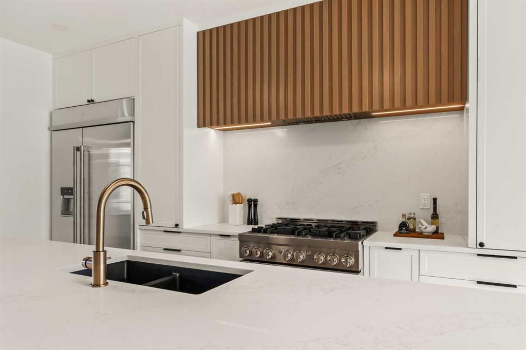 Stunning luxury 3-storey semi-detached residence offering 4 bedrooms, 4.5 bathrooms, a private south-facing backyard, fully air conditioned & ideally located in the heart of highly sought-after Altadore. Showcasing exceptional curb appeal with a gorgeous front elevation, this modern home is filled with natural light from expansive windows & features, thoughtful design & high-end upgrades throughout. The inviting front entry is both stylish & functional, complete with a built-in bench, coat hooks, & smart shoe storage. A front dining room sets the stage for elegant entertaining, while the heart of the home is the extensively upgraded central kitchen, anchored by a large waterfall island. Highlights include full-height cabinetry, deep lower drawers, soft-close hardware, a built-in pantry, & custom hood fan. Premium JennAir stainless steel appliances include a French-door refrigerator, gas range, built-in microwave, garburator & dishwasher. Across from the island, additional built-in cabinetry & counter space feature a beverage cooler. The rear living room is warm & refined, centred around a gas fireplace with recessed built-ins & custom millwork. Ten-foot-wide sliding patio doors open onto a south-facing exposed aggregate deck, seamlessly blending indoor & outdoor living. A spacious rear mudroom offers a closet, bench, & coat hooks, along with a private powder room featuring a vessel sink & sleek linear mirror. The second level includes the primary retreat featuring a generous bedroom & a spa-inspired 5-piece ensuite with a freestanding soaker tub surrounded by floor-to-ceiling tile, heated floors, a custom walk-in glass steam shower with rainfall shower head & built-in bench, dual vanity, & a walk-in closet with custom organizers, drawers, and a full-height mirror. Two additional bedrooms, complemented by a beautiful 4-piece bathroom & a thoughtfully designed laundry room with abundant cabinetry, counter space, & sink. The third level offers incredible flexibility with a bright loft-style bonus room featuring a built-in media centre & wet bar with beverage cooler, a separate home office, a full four-piece bathroom, & access to a private south-facing balcony. This level can also easily function as a studio-style 5th bedroom. The fully developed lower level is equally impressive, featuring a family room with wet bar & custom cabinetry, a 10-foot-wide glass-enclosed home gym with rubber flooring, a 4th bedroom, & a 3-piece bathroom. This level is roughed-in for in-floor heating. Built-in speakers are installed throughout the home & centrally wired to the mechanical room, & the property is also roughed-in for a central vacuum system. Outside, the backyard has been upgraded with turf for low-maintenance living, while the deck offers the perfect space for outdoor furniture. Altadore remains one of Calgary’s most desirable inner-city communities, offering quick access to Glenmore Athletic Park, Marda Loop, River Park off-leash, Sandy Beach, schools and more!