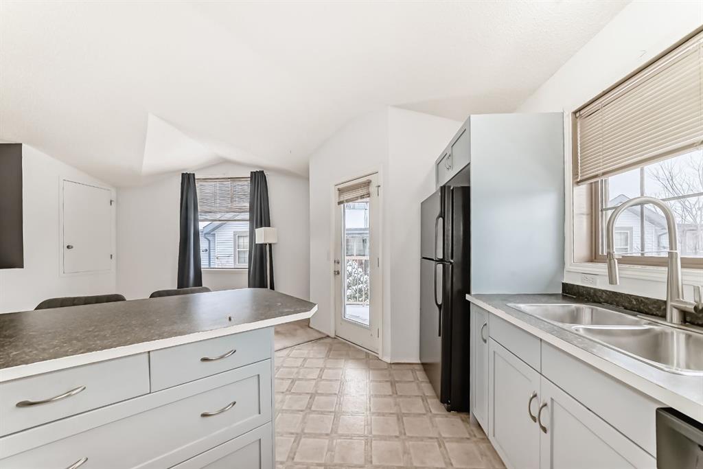 Bright and beautifully designed, this 753 square foot one bedroom plus den townhome offers both comfort and functionality. VAULTED CEILINGS and large windows fill the home with an abundance of natural light, enhancing the open-concept living space. The kitchen flows into the living & dining space, provides ample counter space, plenty of cupboards AND a walk-in pantry! The large den can be used for a home-office, guest area or bonus living space! Comfort is elevated with IN-FLOOR HEATING throughout and the efficiency of a tankless hot water system. The bright spacious bedroom and 4 piece bathroom complete this layout. Enjoy the added benefit of LOW CONDO FEES and a prime location. Close to parks, playgrounds, shops & minutes away from Stoney Trail for an easy commute. An excellent space for first-time home buyers, investors, or if you are looking to downsize.